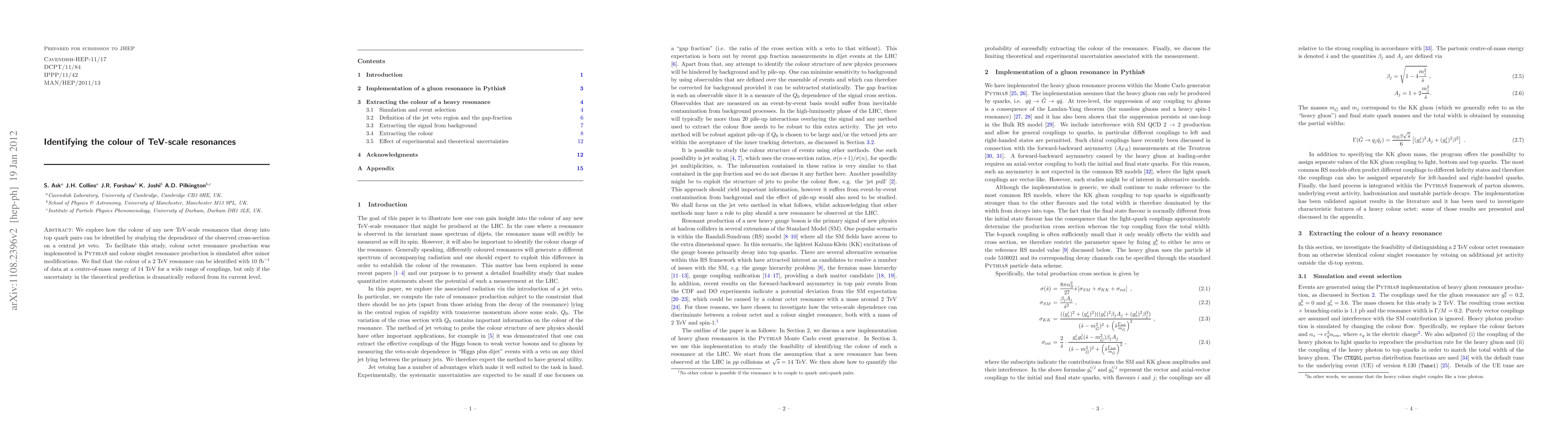 We explore how the colour of any new TeV-scale resonances that decay into top quark pairs can be identified by studying the dependence of the observed cross-section on a central jet veto. To facilitate this study, colour octet resonance production was implemented in Pythia8 and colour singlet resonance production is simulated after minor modifications. We find that the colour of a 2 TeV resonance can be identified with 10/fb of data at a centre-of-mass energy of 14 TeV for a wide range of couplings, but only if the uncertainty in the theoretical prediction is dramatically reduced from its current level.