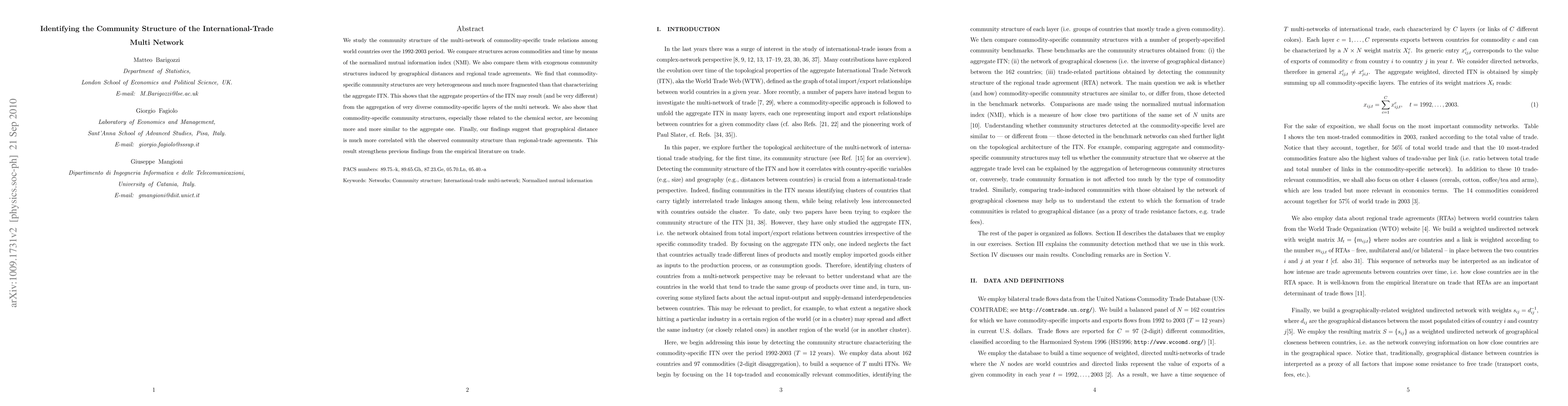 This study investigates the community structure of a multi-network representing commodity-specific trade relations among countries from 1992 to 2003, revealing significant heterogeneity and fragmentation compared to the aggregate trade network. Geographical distance is found to be a stronger determinant of community structure than regional trade agreements.