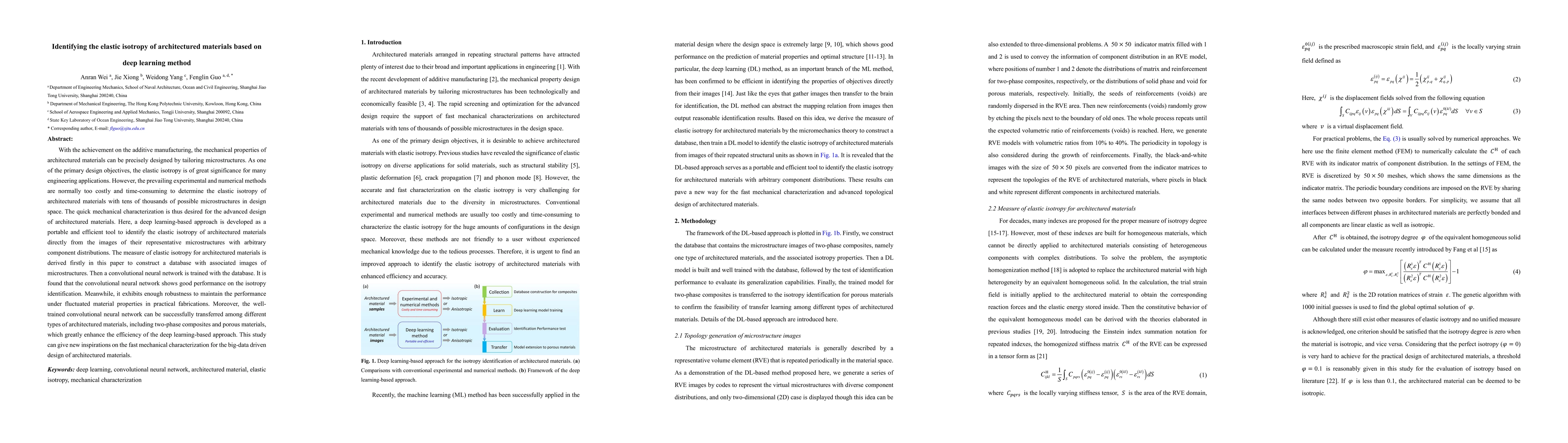 This paper develops a deep learning method to efficiently identify the elastic isotropy of architectured materials using convolutional neural networks trained on microstructure images. The approach offers a cost-effective and rapid alternative to traditional methods for characterizing the mechanical properties of numerous microstructure designs.