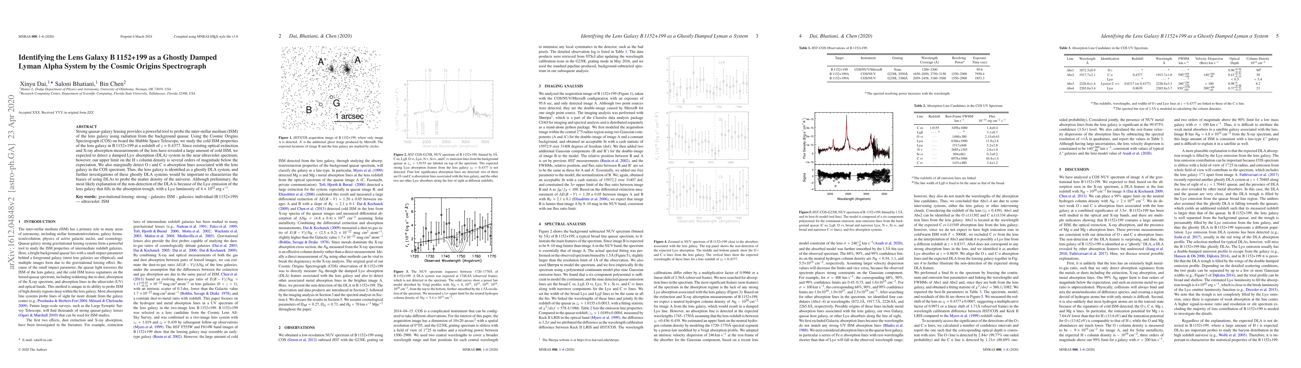 Strong quasar-galaxy lensing provides a powerful tool to probe the inter-stellar medium (ISM) of the lens galaxy using radiation from the background quasar. Using the Cosmic Origins Spectrograph (COS) on board the Hubble Space Telescope, we study the cold ISM properties of the lens galaxy in B1152+199 at a redshift of z=0.4377. Since existing optical extinction and X-ray absorption measurements of the lens have revealed a large amount of cold ISM, we expected to detect a damped Lya absorption (DLA) system in the near ultraviolet spectrum; however, our upper limit on the HI column density is several orders of magnitude below the expectation. We also marginally detect OI and CII absorption lines associated with the lens galaxy in the COS spectrum. Thus, the lens galaxy is identified as a ghostly DLA system, and further investigations of these ghostly DLA systems would be important to characterize the biases of using DLAs to probe the matter density of the universe. Although preliminary, the most likely explanation of the non-detection of the DLA is because of the Lya emission of the lens galaxy that fills in the absorption trough, with a Lya luminosity of 4e42 erg/s.