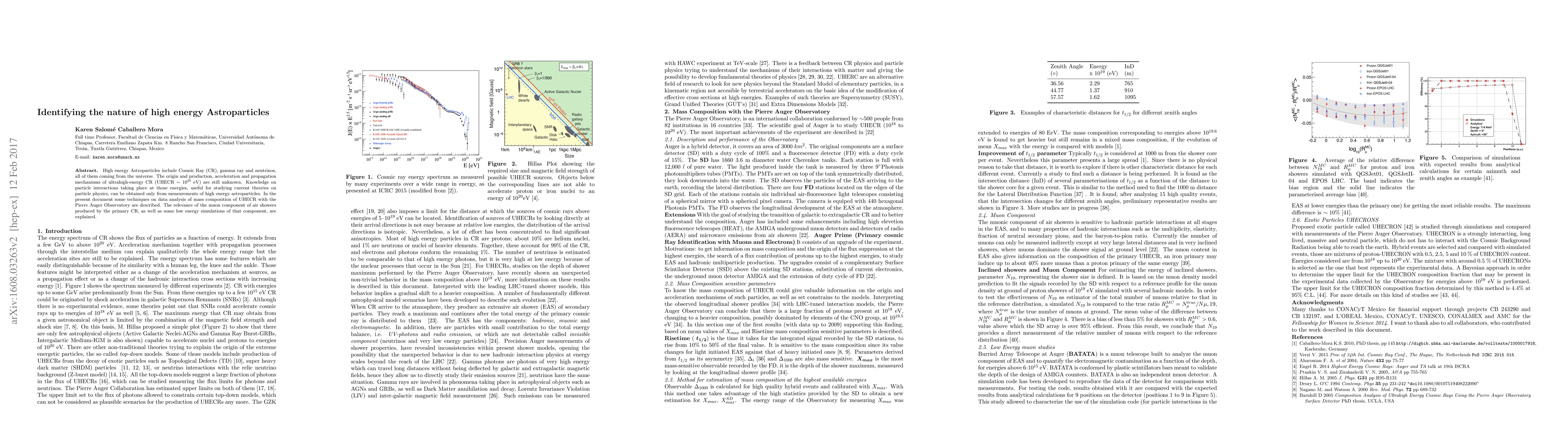 High energy Astroparticles include Cosmic Ray, gamma ray and neutrinos, all of them coming from the universe. The origin and production, acceleration and propagation mechanisms of ultrahigh-energy CR (up to $10^{20}$ eV) are still unknown. Knowledge on particle interactions taking place at those energies, useful for studying current theories on particle physics, can be obtained only from measurements of high energy astroparticles. In the present document some techniques on data analysis of mass composition of UHECR with the Pierre Auger Observatory are described. The relevance of the muon component of air showers produced by the primary CR, as well as some low energy simulations of that component, are explained.