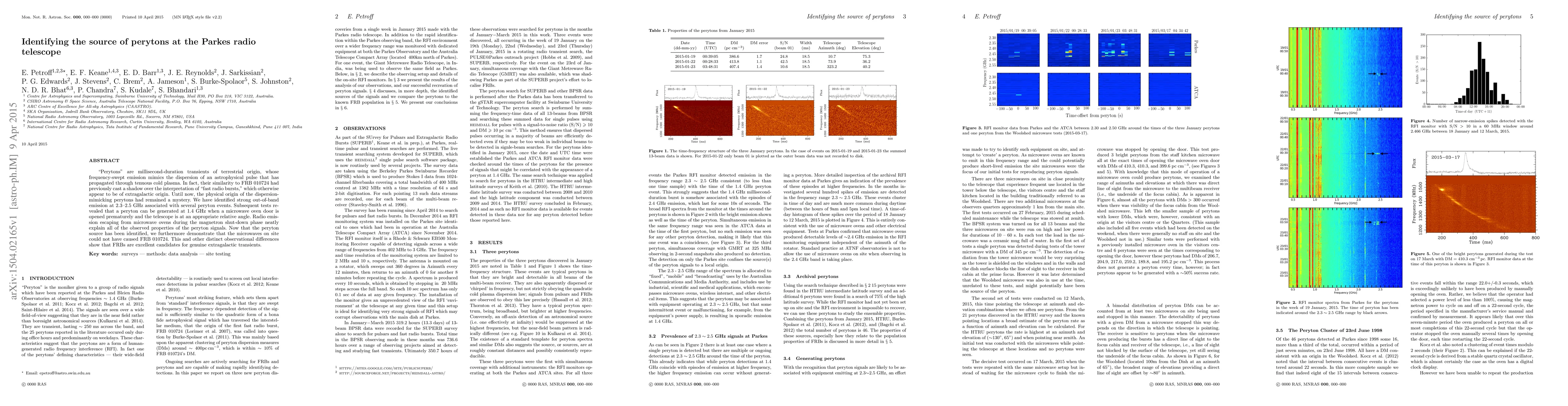 "Perytons" are millisecond-duration transients of terrestrial origin, whose frequency-swept emission mimics the dispersion of an astrophysical pulse that has propagated through tenuous cold plasma. In fact, their similarity to FRB 010724 had previously cast a shadow over the interpretation of "fast radio bursts," which otherwise appear to be of extragalactic origin. Until now, the physical origin of the dispersion-mimicking perytons had remained a mystery. We have identified strong out-of-band emission at 2.3--2.5 GHz associated with several peryton events. Subsequent tests revealed that a peryton can be generated at 1.4 GHz when a microwave oven door is opened prematurely and the telescope is at an appropriate relative angle. Radio emission escaping from microwave ovens during the magnetron shut-down phase neatly explain all of the observed properties of the peryton signals. Now that the peryton source has been identified, we furthermore demonstrate that the microwaves on site could not have caused FRB 010724. This and other distinct observational differences show that FRBs are excellent candidates for genuine extragalactic transients.