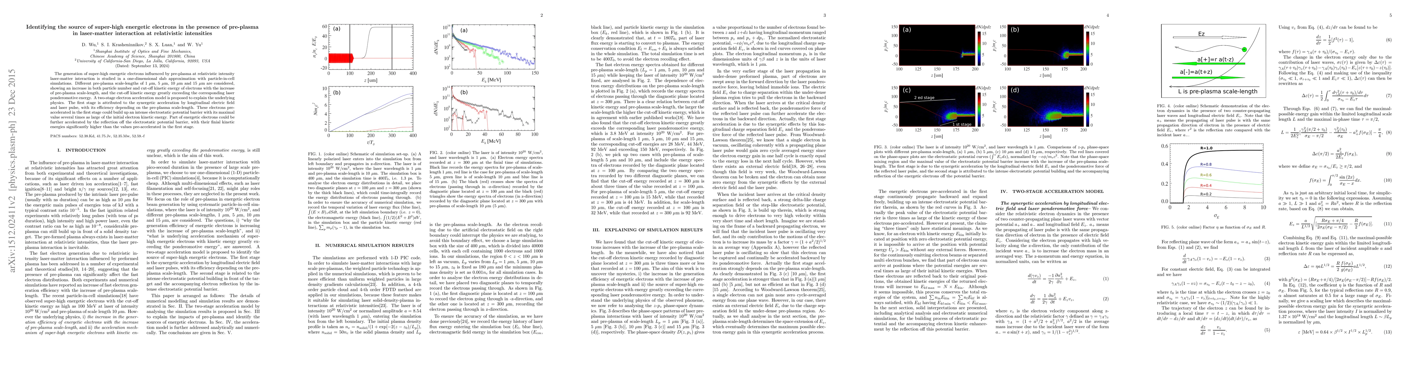 This study investigates the generation of super-high energetic electrons in laser-matter interactions at relativistic intensities, focusing on the influence of pre-plasma scale-lengths. A two-stage electron acceleration model is proposed, explaining the significant increase in electron kinetic energy due to synergetic effects and reflection off an electrostatic potential barrier.