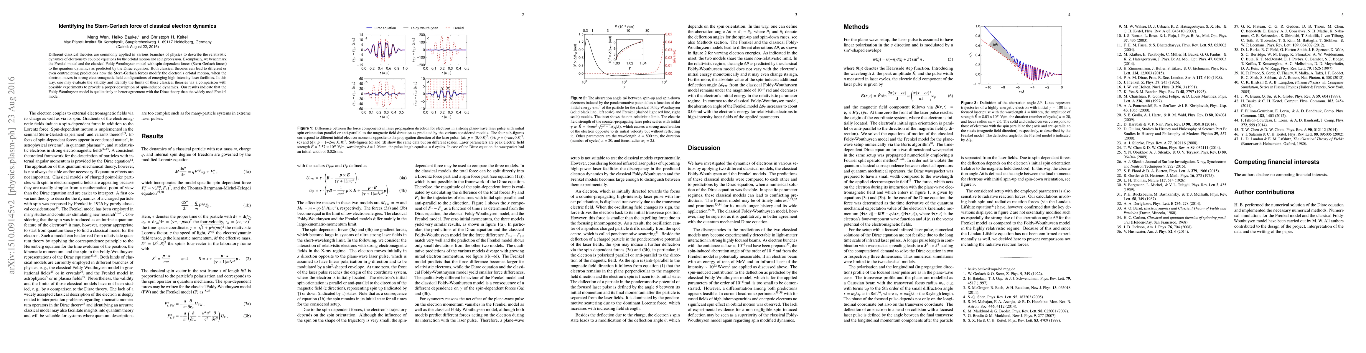 Different classical theories are commonly applied in various branches of physics to describe the relativistic dynamics of electrons by coupled equations for the orbital motion and spin precession. Exemplarily, we benchmark the Frenkel model and the classical Foldy-Wouthuysen model with spin-dependent forces (Stern-Gerlach forces) to the quantum dynamics as predicted by the Dirac equation. Both classical theories can lead to different or even contradicting predictions how the Stern-Gerlach forces modify the electron's orbital motion, when the electron moves in strong electromagnetic field configurations of emerging high-intensity laser facilities. In this way, one may evaluate the validity and identify the limits of these classical theories via a comparison with possible experiments to provide a proper description of spin-induced dynamics. Our results indicate that the Foldy-Wouhuysen model is qualitatively in better agreement with the Dirac theory than the widely used Frenkel model.