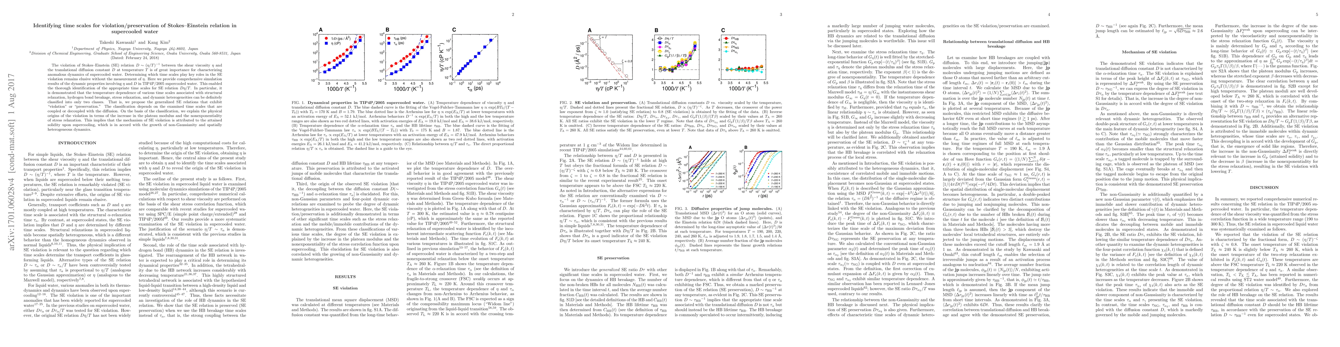 This paper identifies time scales for the violation or preservation of the Stokes-Einstein relation in supercooled water, revealing that the relation's behavior depends on the classification of time scales related to structural relaxation and dynamic heterogeneities. The study explains the physical origins of the relation's violation through the increase in plateau modulus and nonexponential stress relaxation.