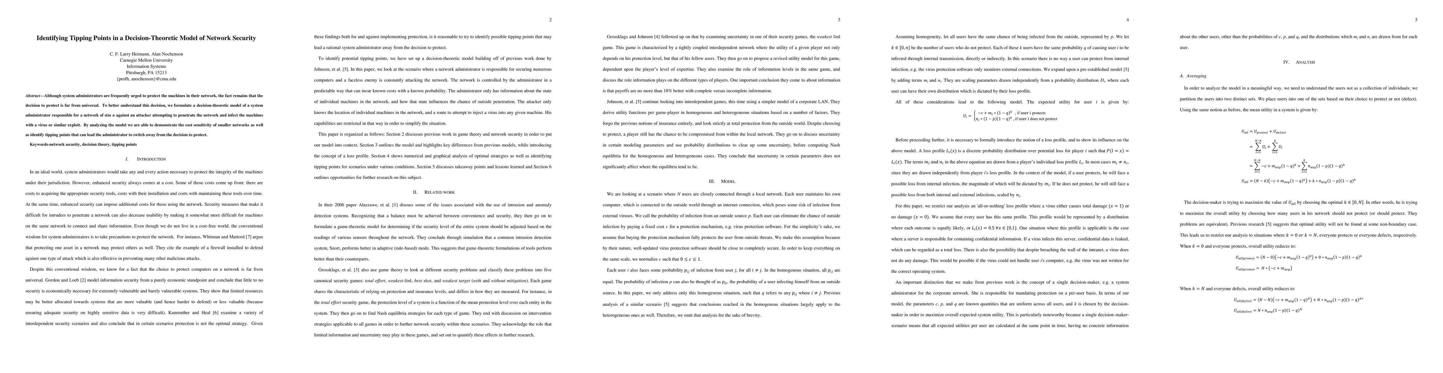 This paper develops a decision-theoretic model to analyze system administrators' choices to protect network machines from attackers. It identifies tipping points where cost sensitivity leads administrators to abandon protection measures.