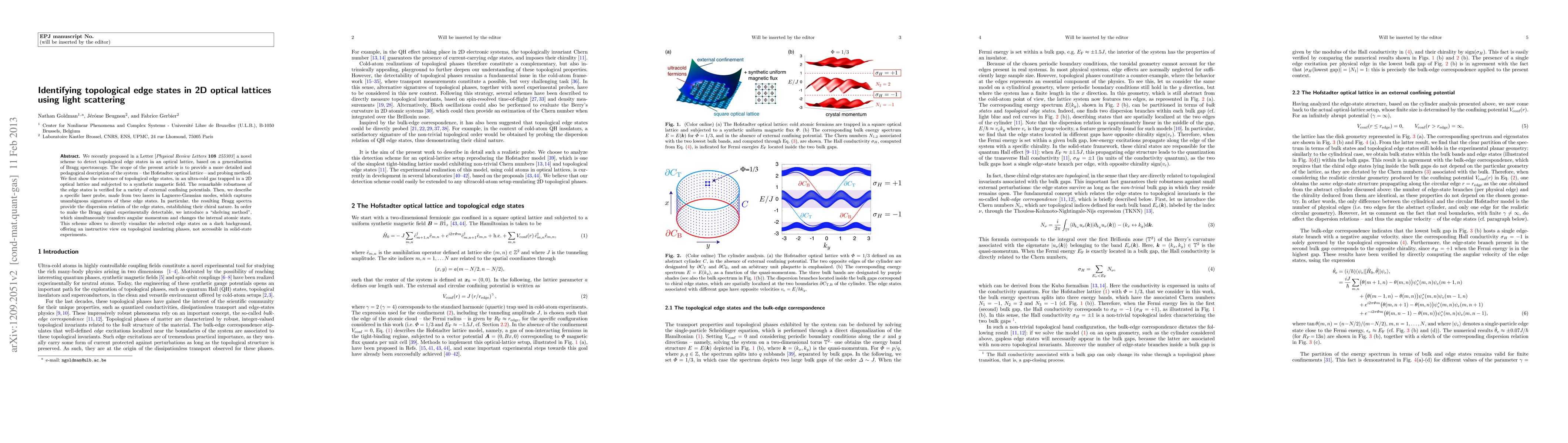 This paper details a method for detecting topological edge states in 2D optical lattices using light scattering, specifically Bragg spectroscopy, and introduces a novel laser probe technique to visualize these states. The robustness of the edge states is demonstrated, and a "shelving method" is proposed to enhance experimental detectability.