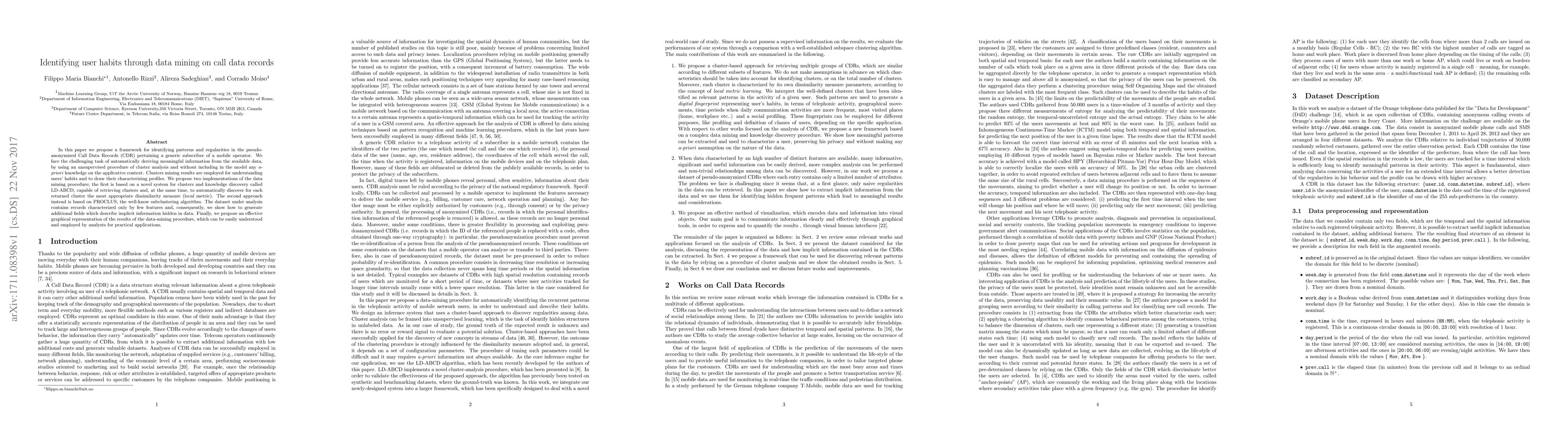 This paper proposes a framework for identifying user habits from Call Data Records (CDR) using unsupervised cluster analysis without prior context knowledge. It introduces two data mining implementations, LD-ABCD and PROCLUS, and presents a graphical representation of the results for practical use by analysts.