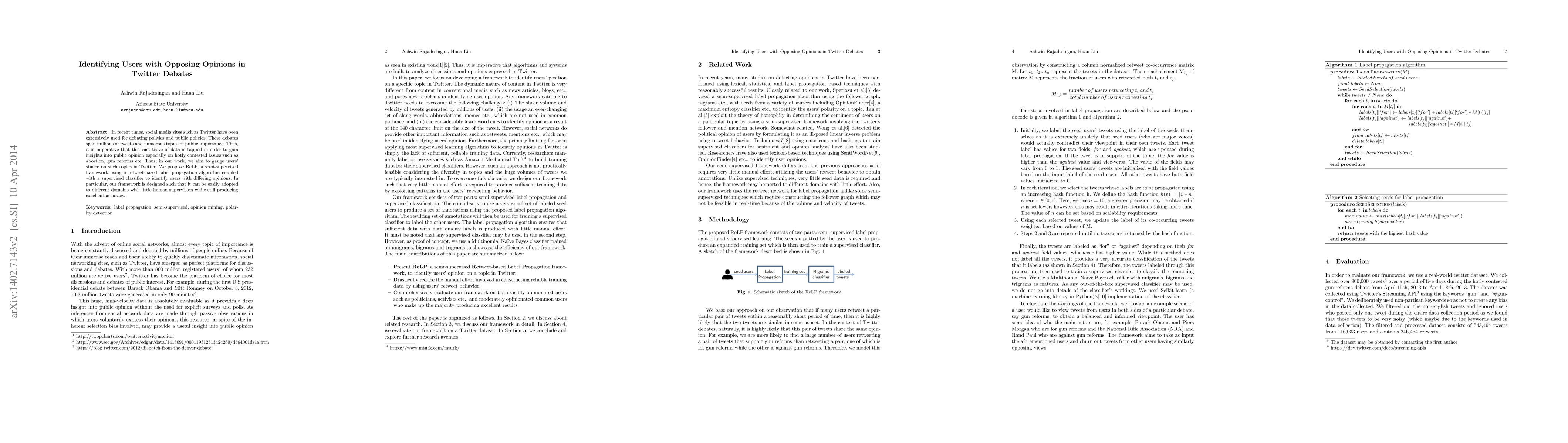 This research paper proposes a framework to identify users with opposing opinions on Twitter debates, using a semi-supervised algorithm that produces accurate results with minimal human supervision. The study aims to provide insights into public opinion on hotly contested issues.
