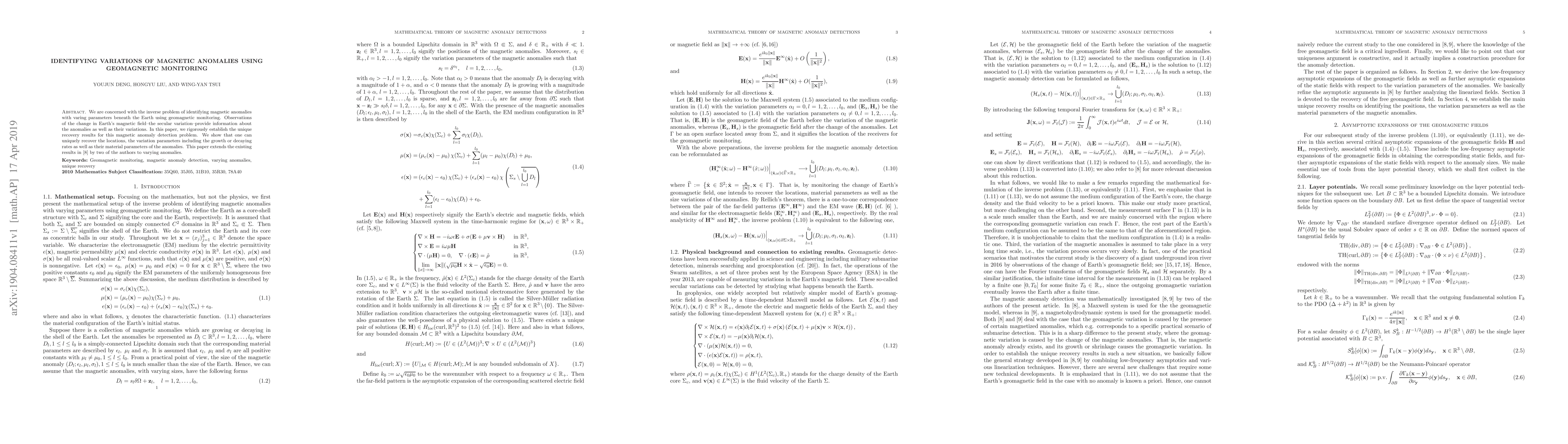 Researchers successfully recovered unique locations, variation parameters, and material properties of magnetic anomalies beneath the Earth using geomagnetic monitoring, extending previous findings in the field.
