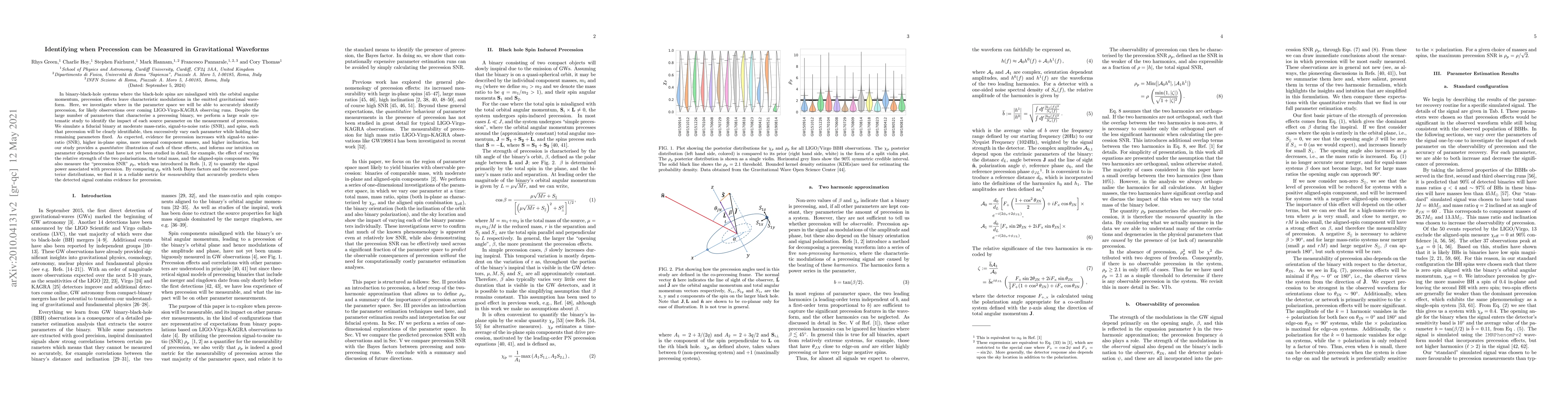 In binary-black-hole systems where the black-hole spins are misaligned with the orbital angular momentum, precession effects leave characteristic modulations in the emitted gravitational waveform. Here, we investigate where in the parameter space we will be able to accurately identify precession, for likely observations over coming LIGO-Virgo-KAGRA observing runs. Despite the large number of parameters that characterise a precessing binary, we perform a large scale systematic study to identify the impact of each source parameter on the measurement of precession. We simulate a fiducial binary at moderate mass-ratio, signal-to-noise ratio (SNR), and spins, such that precession will be clearly identifiable, then successively vary each parameter while holding the remaining parameters fixed. As expected, evidence for precession increases with signal-to noise-ratio (SNR), higher in-plane spins, more unequal component masses, and higher inclination, but our study provides a quantitative illustration of each of these effects, and informs our intuition on parameter dependencies that have not yet been studied in detail, for example, the effect of varying the relative strength of the two polarisations, the total mass, and the aligned-spin components. We also measure the "precession SNR" $\rho_p$, which was introduced in Refs[1,2] to quantify the signal power associated with precession. By comparing $\rho_p$ with both Bayes factors and the recovered posterior distributions, we find it is a reliable metric for measurability that accurately predicts when the detected signal contains evidence for precession.