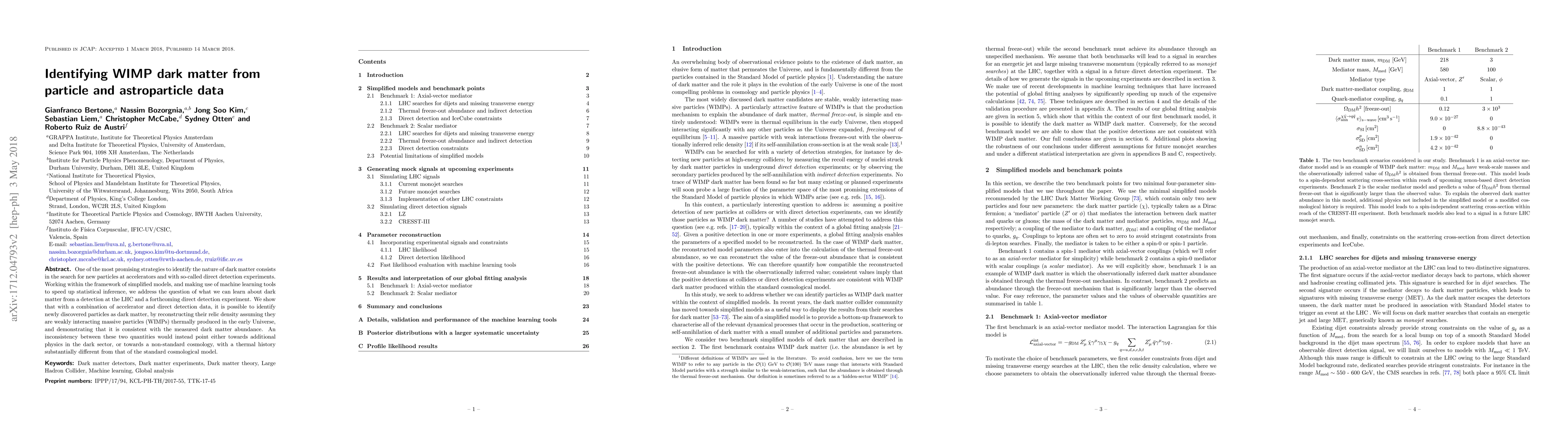Researchers show that combining data from particle accelerators and direct detection experiments can help identify dark matter particles as WIMPs, potentially shedding light on the nature of dark matter. An inconsistency could indicate additional physics or a non-standard cosmology.