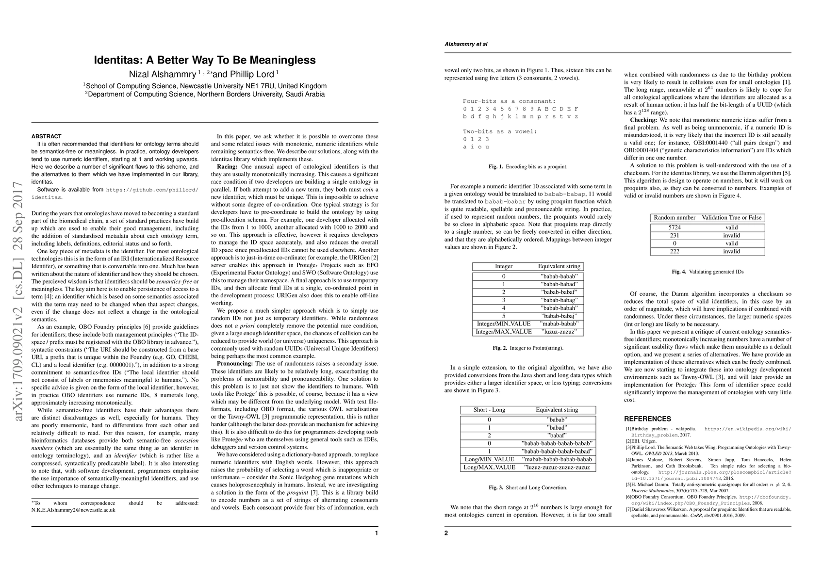 It is often recommended that identifiers for ontology terms should be semantics-free or meaningless. In practice, ontology developers tend to use numeric identifiers, starting at 1 and working upwards. In this paper we present a critique of current ontology semantics-free identifiers; monotonically increasing numbers have a number of significant usability flaws which make them unsuitable as a default option, and we present a series of alternatives. We have provide an implementation of these alternatives which can be freely combined.