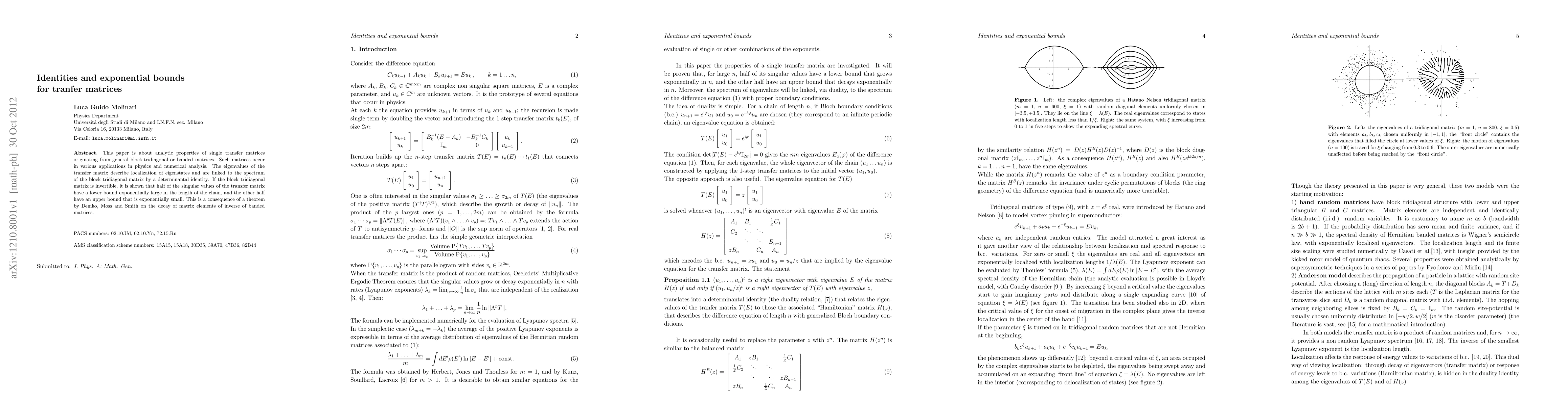 This paper is about analytic properties of single transfer matrices originating from general block-tridiagonal or banded matrices. Such matrices occur in various applications in physics and numerical analysis. The eigenvalues of the transfer matrix describe localization of eigenstates and are linked to the spectrum of the block tridiagonal matrix by a determinantal identity, If the block tridiagonal matrix is invertible, it is shown that half of the singular values of the transfer matrix have a lower bound exponentially large in the length of the chain, and the other half have an upper bound that is exponentially small. This is a consequence of a theorem by Demko, Moss and Smith on the decay of matrix elements of inverse of banded matrices.