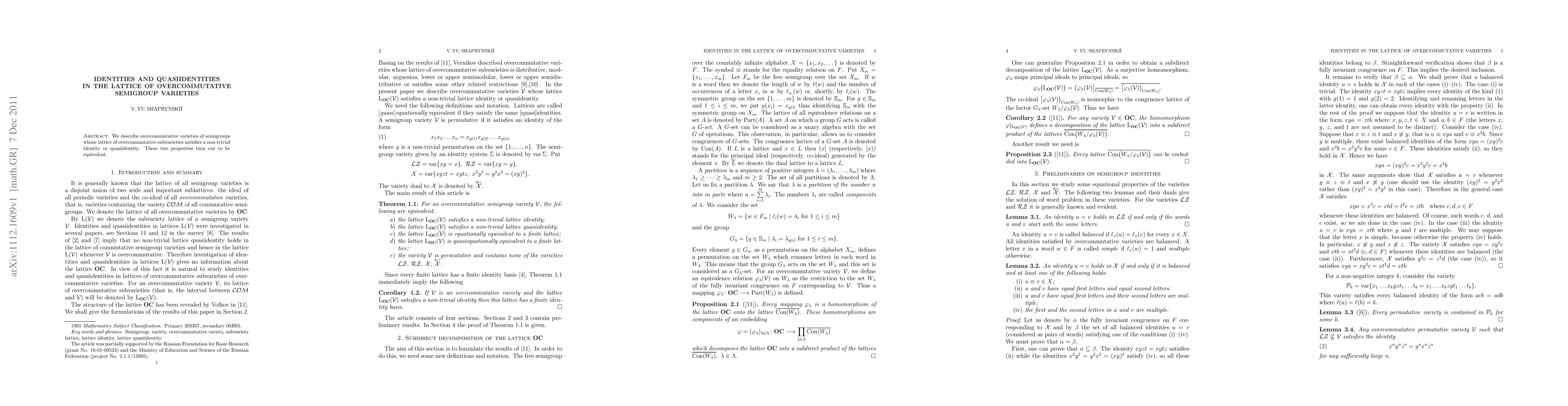 The paper investigates overcommutative semigroup varieties where the lattice of their subvarieties meets a non-trivial identity or quasiidentity condition, showing these two properties are equivalent.