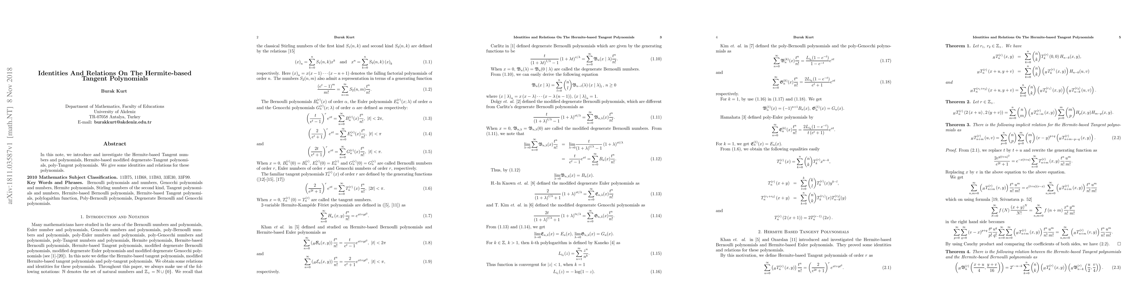 The research used a combination of mathematical techniques and computational methods to investigate the properties of Hermite-based tangent polynomials.