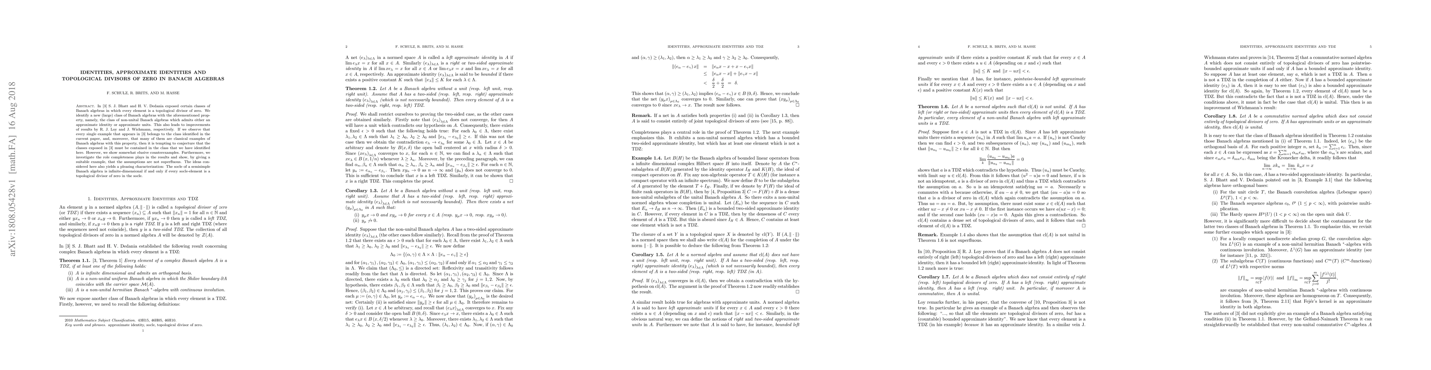 This paper identifies a new class of non-unital Banach algebras with every element as a topological divisor of zero, specifically those with approximate identities or approximate units. It also presents counterexamples disproving the conjecture that previous classes are contained within this new class, and discusses the significance of completeness in these results.
