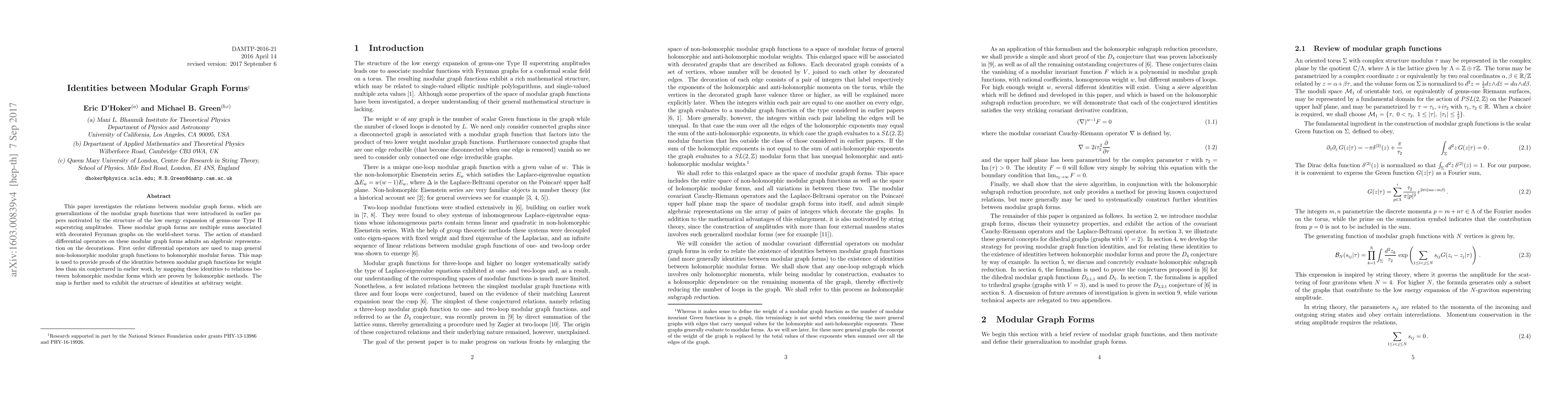This paper investigates the relations between modular graph forms, which are generalizations of the modular graph functions that were introduced in earlier papers motivated by the structure of the low energy expansion of genus-one Type II superstring amplitudes. These modular graph forms are multiple sums associated with decorated Feynman graphs on the world-sheet torus. The action of standard differential operators on these modular graph forms admits an algebraic representation on the decorations. First order differential operators are used to map general non-holomorphic modular graph functions to holomorphic modular forms. This map is used to provide proofs of the identities between modular graph functions for weight less than six conjectured in earlier work, by mapping these identities to relations between holomorphic modular forms which are proven by holomorphic methods. The map is further used to exhibit the structure of identities at arbitrary weight.