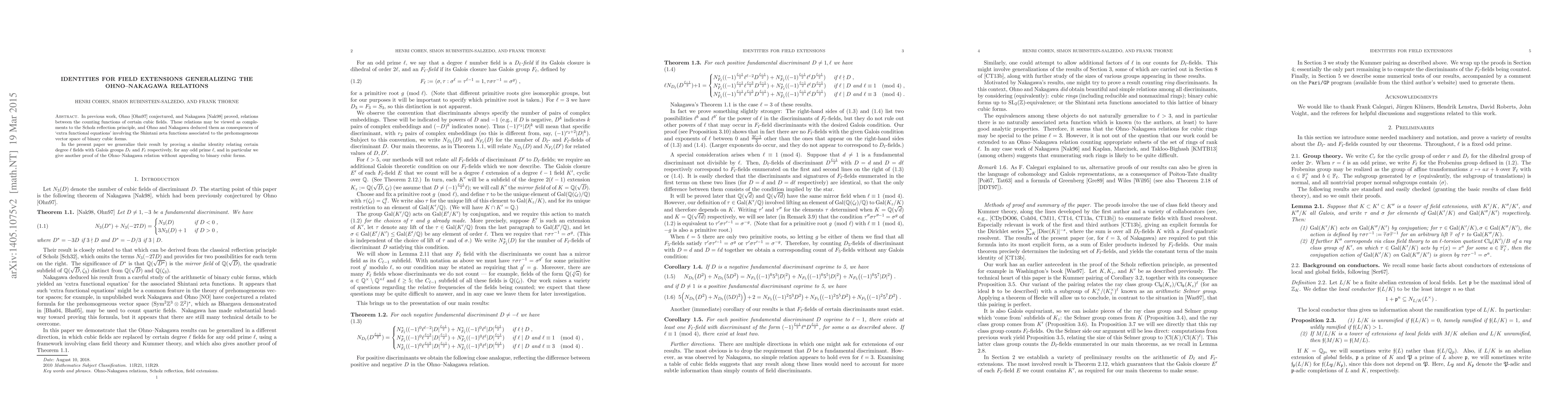 This paper generalizes the Ohno-Nakagawa relations, proving a new identity for degree l fields with specific Galois groups. It provides an alternative proof of the original relation, avoiding the use of binary cubic forms.
