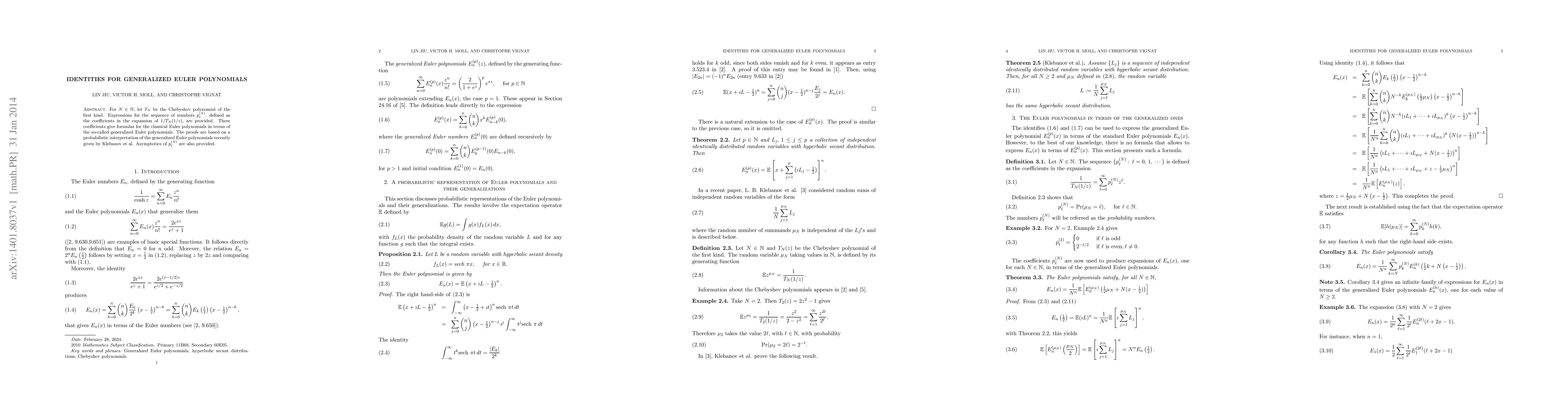 This paper provides expressions for the coefficients $p_{\ell}^{(N)}$ in the expansion of $1/T_{N}(1/z)$, linking classical Euler polynomials to generalized Euler polynomials. The proofs leverage a probabilistic interpretation of the generalized Euler polynomials and include asymptotic behavior of $p_{\ell}^{(N)}$.