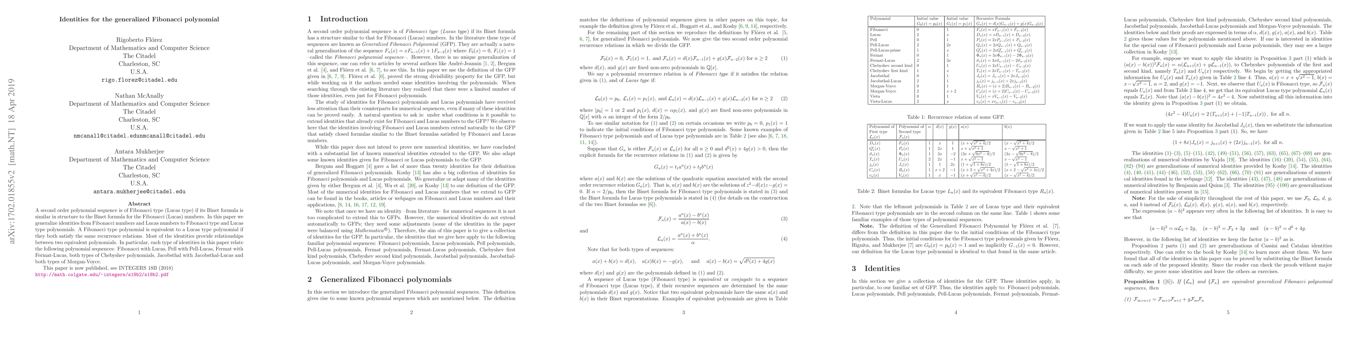 This paper generalizes identities from Fibonacci and Lucas numbers to their polynomial counterparts, establishing relationships between various Fibonacci type and Lucas type polynomials. The identities highlight equivalences between these polynomial sequences, such as Fibonacci-Lucas, Pell-Pell-Lucas, and Chebyshev polynomials.