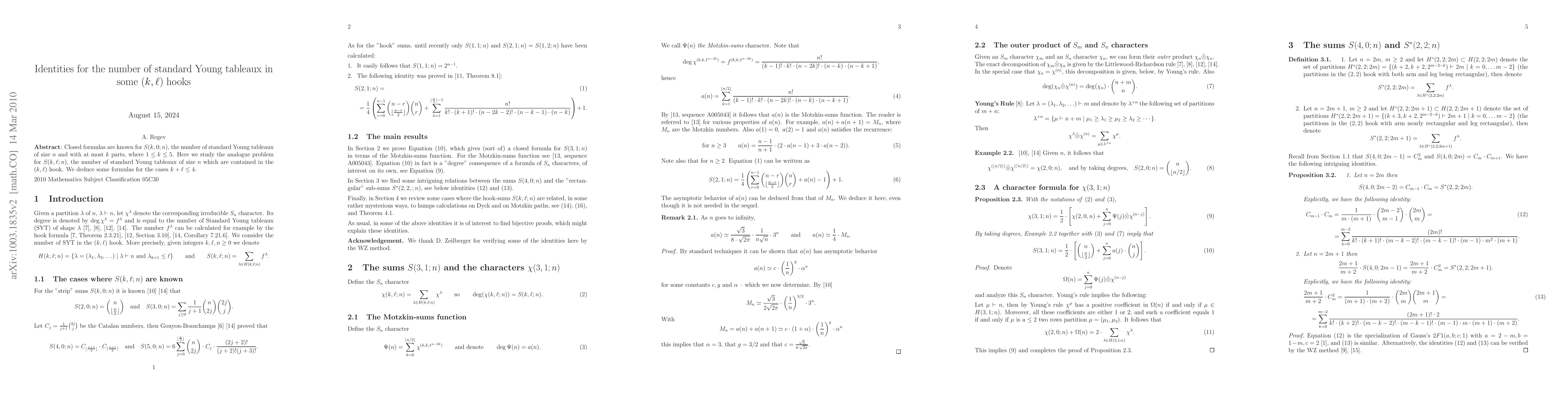 Closed formulas are known for $S(k,0;n)$, the number of standard Young tableaux of size $n$ and with at most $k$ parts, where $1\le k\le 5$. Here we study the analogue problem for $S(k,\ell;n)$, the number of standard Young tableaux of size $n$ which are contained in the $(k,\ell)$ hook. We deduce some formulas for the cases $k+\ell\le 4$.