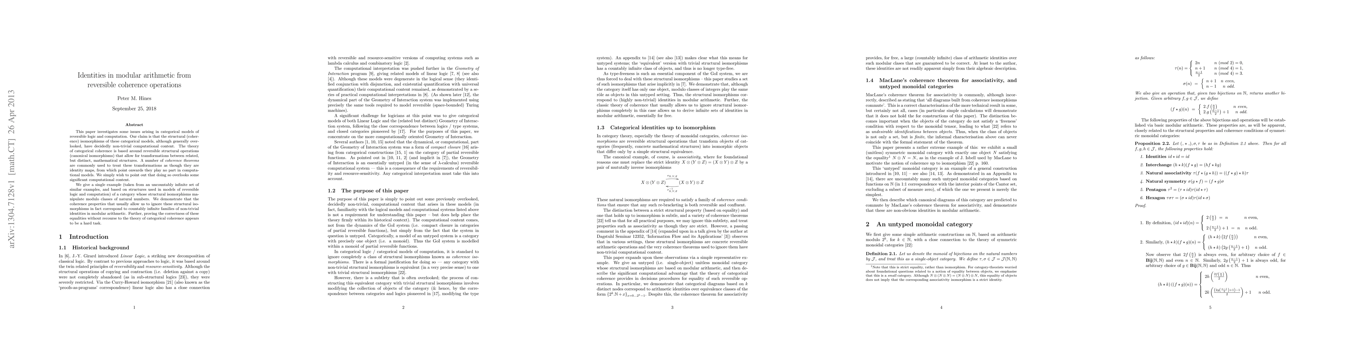 This paper investigates some issues arising in categorical models of reversible logic and computation. Our claim is that the structural (coherence) isomorphisms of these categorical models, although generally overlooked, have decidedly non-trivial computational content. The theory of categorical coherence is based around reversible structural operations (canonical isomorphisms) that allow for transformations between related, but distinct, mathematical structures. A number of coherence theorems are commonly used to treat these transformations as though they are identity maps, from which point onwards they play no part in computational models. We simply wish to point out that doing so overlooks some significant computational content. We give a single example (taken from an uncountably infinite set of similar examples, and based on structures used in models of reversible logic and computation) of a category whose structural isomorphisms manipulate modulo classes of natural numbers. We demonstrate that the coherence properties that usually allow us to ignore these structural isomorphisms in fact correspond to countably infinite families of non-trivial identities in modular arithmetic. Further, proving the correctness of these equalities without recourse to the theory of categorical coherence appears to be a hard task.