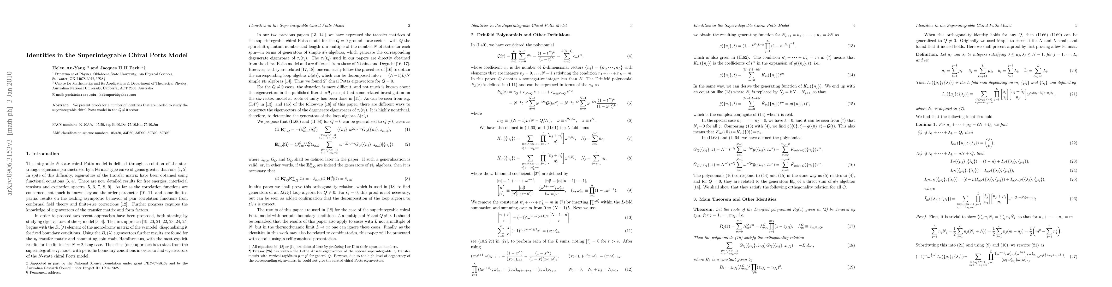 Summary: This paper establishes several critical identities for exploring the $Q\ne0$ sector of the superintegrable chiral Potts model, providing foundational proofs essential for further study.