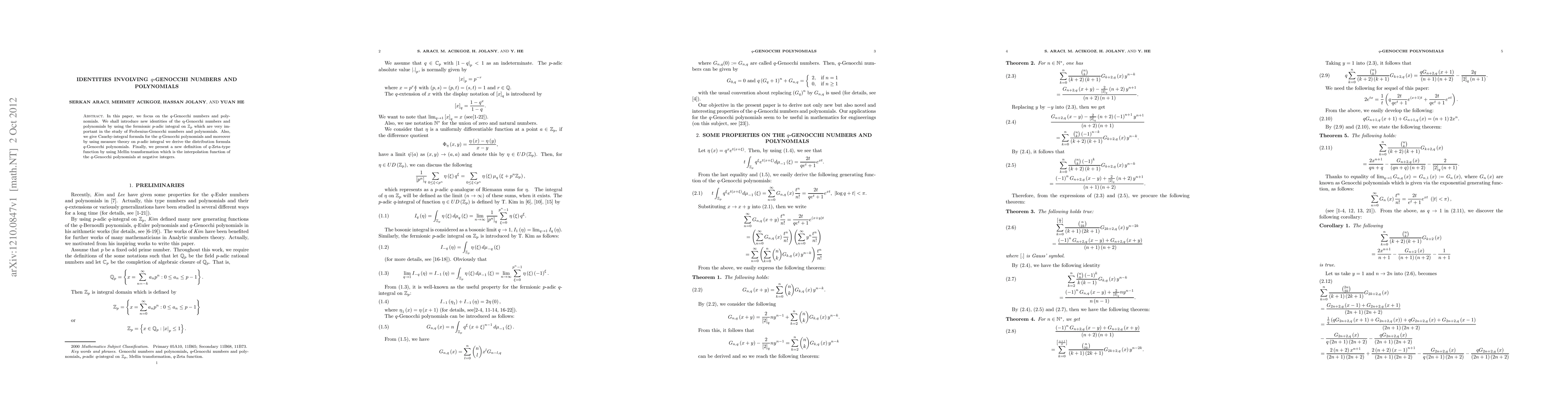 In this paper, we focus on the q-Genocchi numbers and polynomials. We shall introduce new identities of the q-Genocchi numbers and polynomials by using the fermionic p-adic integral on Zp which are very important in the study of Frobenius-Genocchi numbers and polynomials. Also, we give Cauchy-integral formula for the q-Genocchi polynomials and moreover by using measure theory on p-adic integral we derive the distribution formula q-Genocchi polynomials. Finally, we present a new definition of q-Zeta-type function by using Mellin transformation which is the interpolation function of the q-Genocchi polynomials at negative integers.