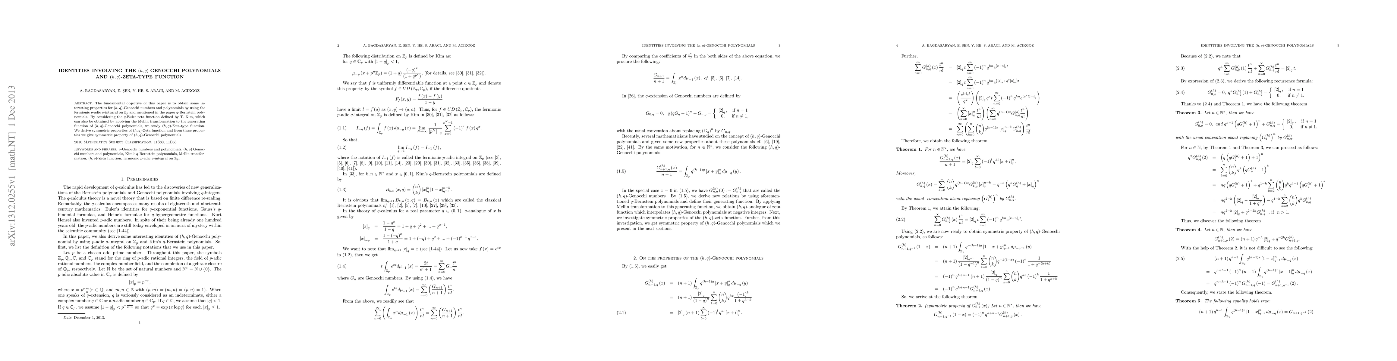 The fundamental objective of this paper is to obtain some interesting properties for $\left(h,q\right)$-Genocchi numbers and polynomials by using the fermionic $p$-adic $q$-integral on $\mathbb{Z}_{p}$ and mentioned in the paper $q$-Bernstein polynomials. By considering the $q$-Euler zeta function defined by T. Kim, which can also be obtained by applying the Mellin transformation to the generating function of $\left(h,q\right)$-Genocchi polynomials, we study $\left(h,q\right)$-Zeta-type function. We derive symmetric properties of $\left(h,q\right)$-Zeta function and from these properties we give symmetric property of $\left(h,q\right)$-Genocchi polynomials.