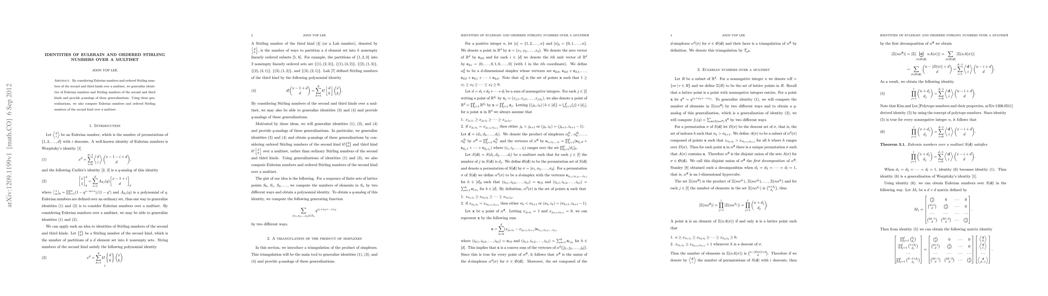 This paper generalizes identities for Eulerian numbers and ordered Stirling numbers of the second and third kinds over multisets, providing $q$-analogs of these generalizations and computing specific Eulerian and ordered Stirling numbers over multisets.