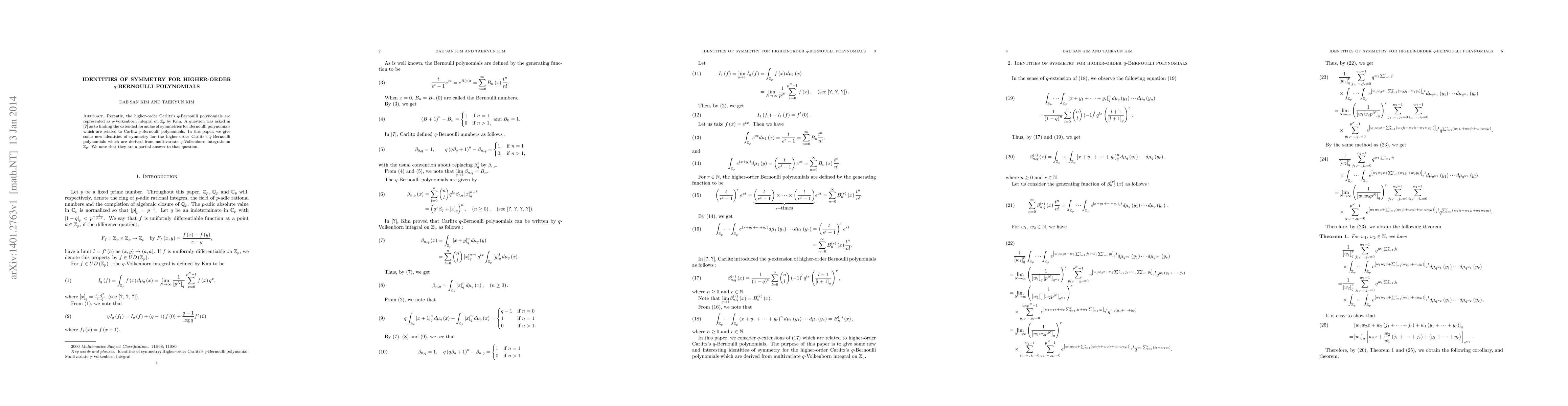 This paper introduces new symmetry identities for higher-order Carlitz q-Bernoulli polynomials, derived from multivariate q-Volkenborn integrals on Zp, providing a partial solution to a previously posed question regarding extended formulae of symmetries for these polynomials.