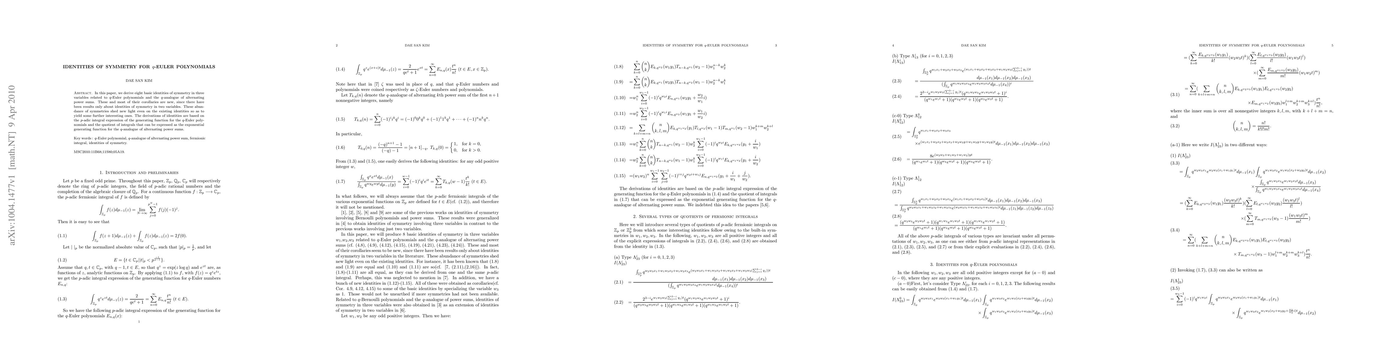 This paper introduces eight new symmetry identities in three variables for $q$-Euler polynomials and $q$-analogue of alternating power sums, derived via $p$-adic integrals and generating functions. These findings expand the existing knowledge, previously limited to two variables, and reveal additional intriguing connections.
