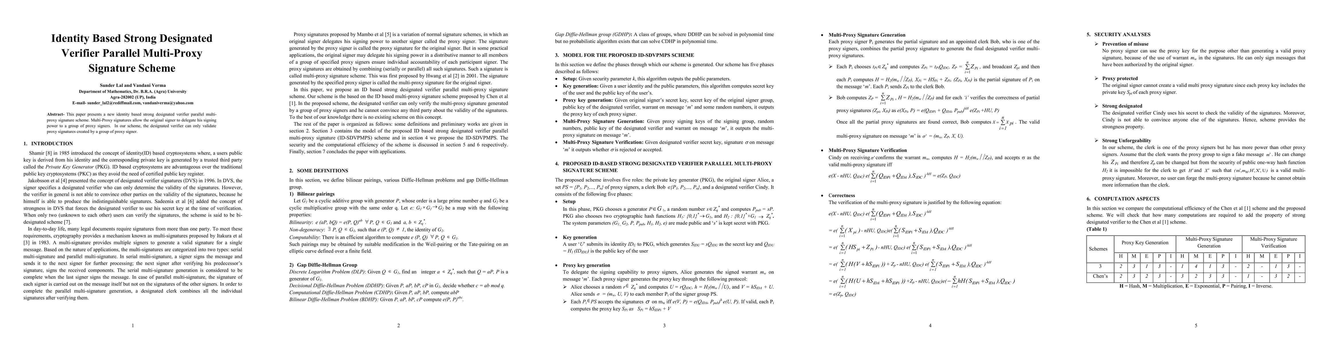 This paper introduces a novel identity-based strong designated verifier parallel multi-proxy signature scheme, enabling the original signer to delegate signing authority to a group of proxy signers, with validation limited to designated verifiers.