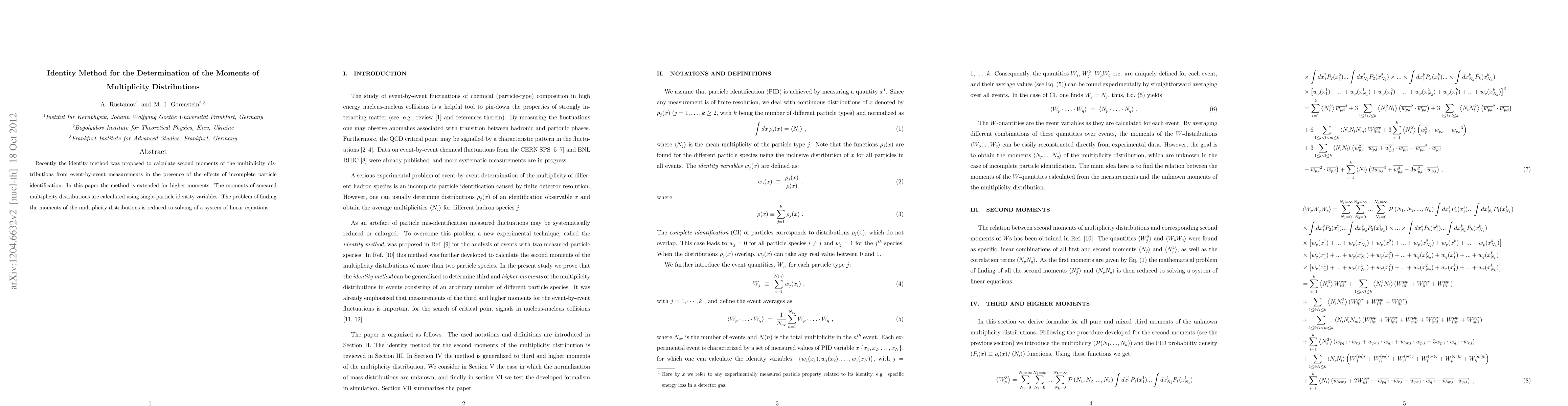 This paper extends the identity method to calculate higher moments of multiplicity distributions from event-by-event measurements, addressing incomplete particle identification. It reduces the problem to solving a system of linear equations using single-particle identity variables.