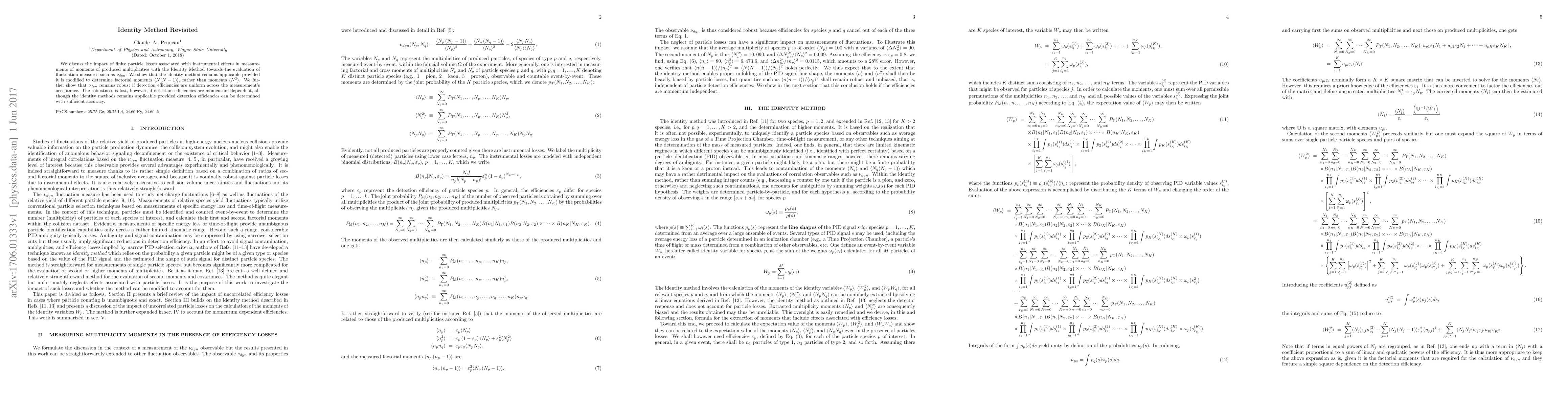 We discuss the impact of finite particle losses associated with instrumental effects in measurements of moments of produced multiplicities with the Identity Method towards the evaluation of fluctuation measures such as $\nu_{dyn}$. We show that the identity method remains applicable provided it is modified to determine factorial moments $\langle N(N-1)\rangle$, rather than moments $\langle N^2\rangle$. We further show that $\nu_{dyn}$ remains robust if detection efficiencies are uniform across the measurement's acceptance. The robustness is lost, however, if detection efficiencies are momentum dependent, although the identity methods remains applicable provided detection efficiencies can be determined with sufficient accuracy.