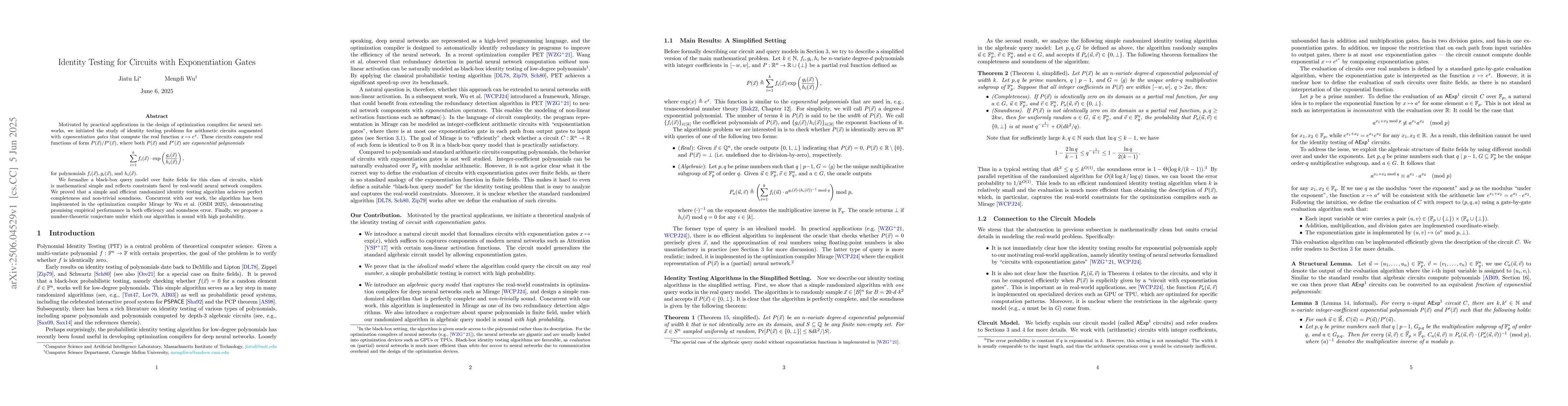 The research formalizes a black-box query model over finite fields for arithmetic circuits extended with exponentiation gates, reflecting constraints faced by real-world neural network compilers.