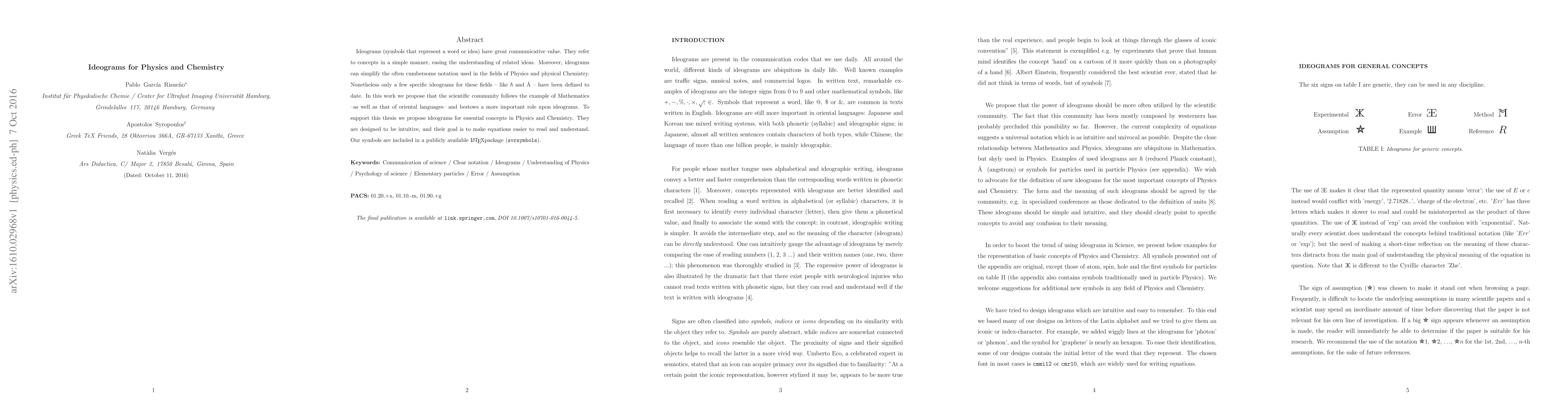 A Latex package was created to include ideograms for Physics and Chemistry