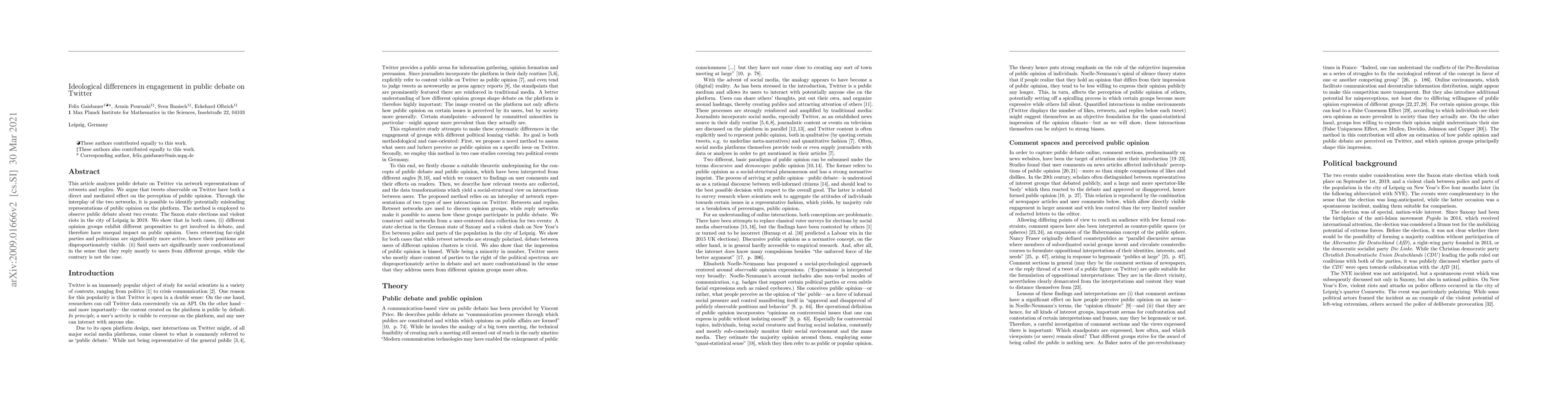 A study analyzing Twitter public debate finds that different opinion groups exhibit unequal engagement in debates, with far-right users having a disproportionate impact on public opinion through aggressive replies.