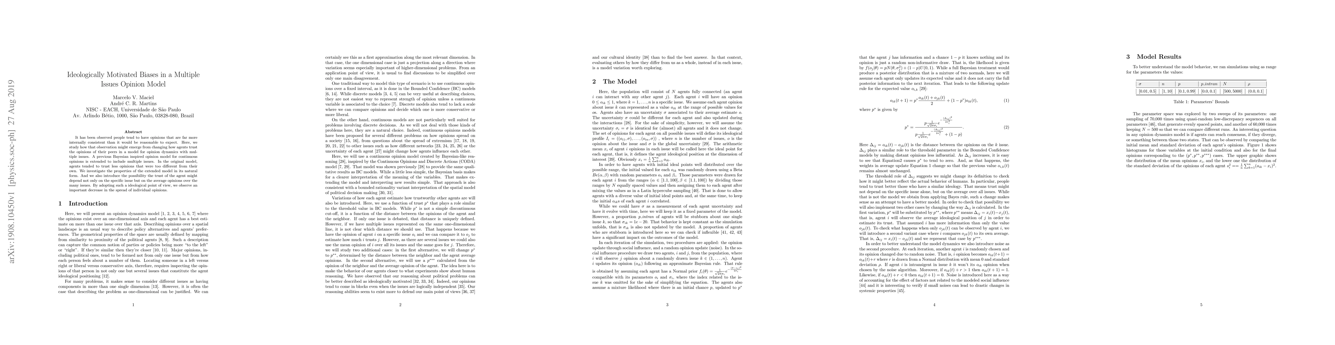 Researchers studied how opinions align when people trust peers with differing views on multiple issues, finding a decrease in opinion spread with an ideological bias.