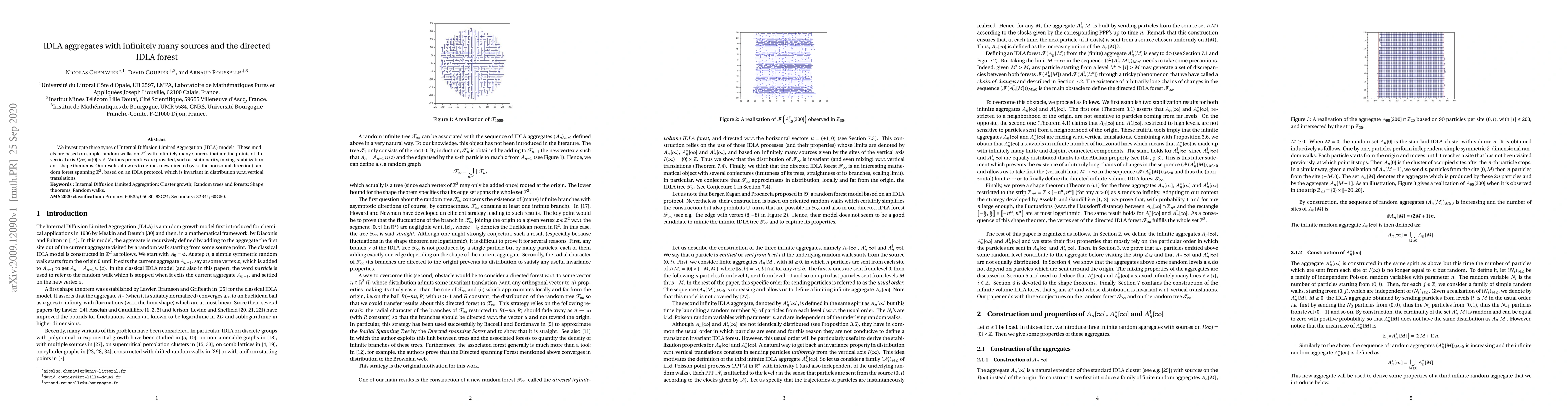 This paper explores three Internal Diffusion Limited Aggregation (IDLA) models with infinite sources along the vertical axis, detailing properties like stationarity and shape theorems. It introduces a new directed random forest spanning $\mathbf{Z}^2$, invariant under vertical translations, based on an IDLA protocol.