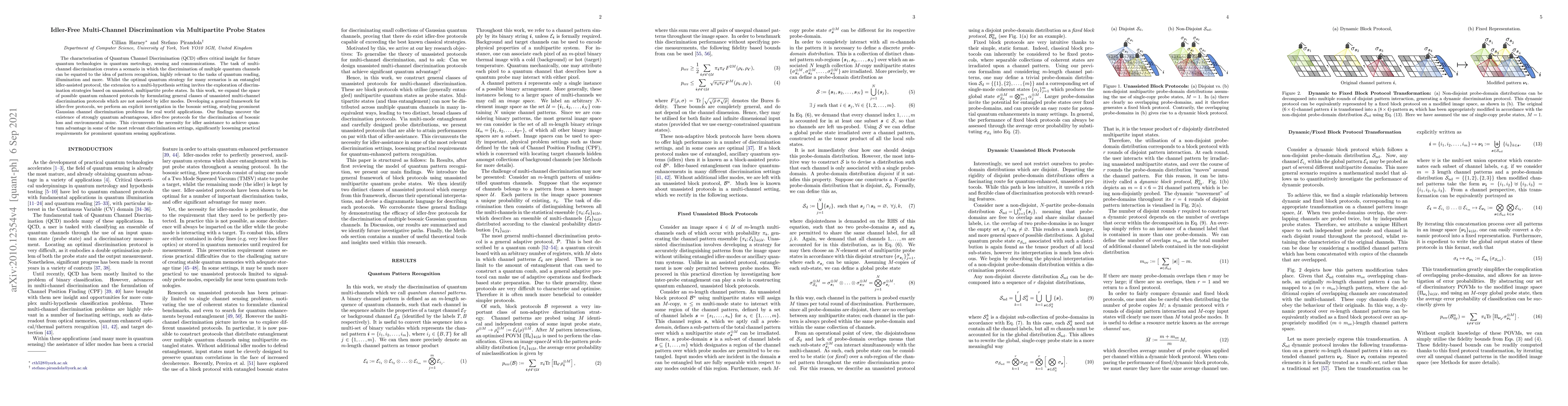 The characterisation of Quantum Channel Discrimination (QCD) offers critical insight for future quantum technologies in quantum metrology, sensing and communications. The task of multi-channel discrimination creates a scenario in which the discrimination of multiple quantum channels can be equated to the idea of pattern recognition, highly relevant to the tasks of quantum reading, illumination and more. Whilst the optimal quantum strategy for many scenarios is an entangled idler-assisted protocol, the extension to a multi-hypothesis setting invites the exploration of discrimination strategies based on unassisted, multipartite probe states. In this work, we expand the space of possible quantum enhanced protocols by formulating general classes of unassisted multi-channel discrimination protocols which are not assisted by idler modes. Developing a general framework for idler-free protocols, we perform an explicit investigation in the bosonic setting, studying prominent Gaussian channel discrimination problems for real world applications. Our findings uncover the existence of strongly quantum advantageous, idler-free protocols for the discrimination of bosonic loss and environmental noise. This circumvents the necessity for idler assistance to achieve quantum advantage in some of the most relevant discrimination settings, significantly loosening practical requirements for prominent quantum sensing applications.
