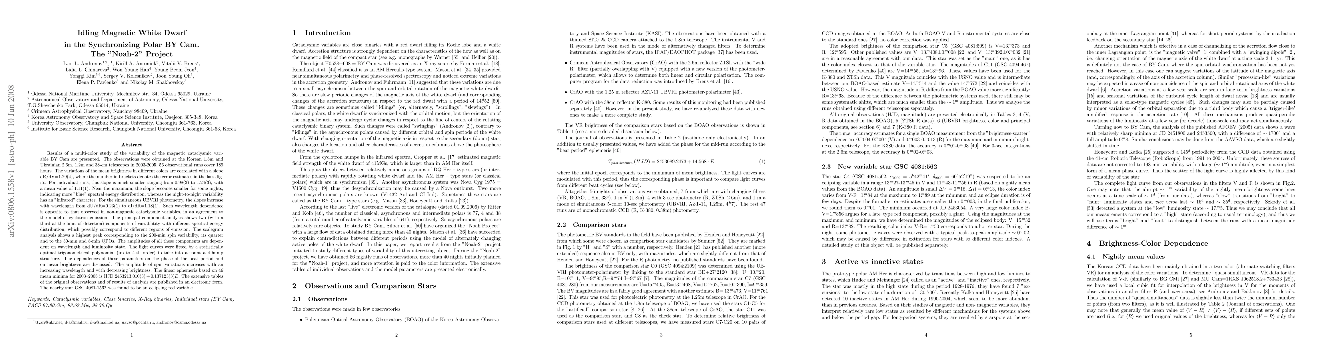 Results of a multi-color study of the variability of the magnetic cataclysmic variable BY Cam are presented. The observations were obtained at the Korean 1.8m and Ukrainian 2.6m, 1.2m and 38-cm telescopes in 2003-2005, 56 observational runs cover 189 hours. The variations of the mean brightness in different colors are correlated with a slope dR/dV=1.29(4), where the number in brackets denotes the error estimates in the last digits. For individual runs, this slope is much smaller ranging from 0.98(3) to 1.24(3), with a mean value of 1.11(1). Near the maximum, the slope becomes smaller for some nights, indicating more blue spectral energy distribution, whereas the night-to-night variability has an infrared character. For the simultaneous UBVRI photometry, the slopes increase with wavelength from dU/dR=0.23(1) to dI/dR=1.18(1). Such wavelength dependence is opposite to that observed in non-magnetic cataclysmic variables, in an agreement to the model of cyclotron emission. The principal component analysis shows two (with a third at the limit of detection) components of variablitity with different spectral energy distribution, which possibly correspond to different regions of emission. The scalegram analysis shows a highest peak corresponding to the 200-min spin variability, its quarter and to the 30-min and 8-min QPOs. The amplitudes of all these components are dependent on wavelength and luminosity state. The light curves were fitted by a statistically optimal trigonometrical polynomial (up to 4-th order) to take into account a 4-hump structure. The dependences of these parameters on the phase of the beat period and on mean brightness are discussed. The amplitude of spin variations increases with an increasing wavelength and with decreasing brightness