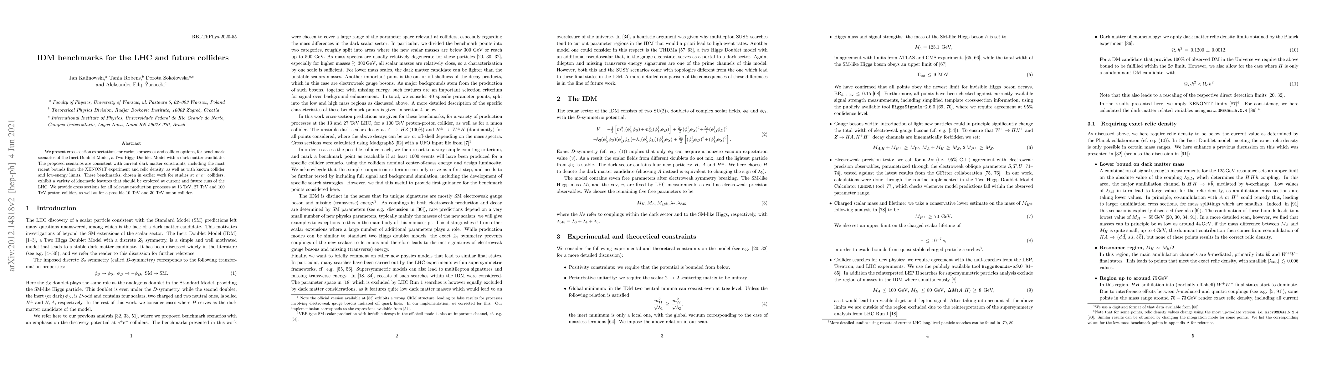 This research paper presents cross-section expectations for various processes in the Inert Doublet Model at different colliders, including the LHC and future machines, to help identify promising benchmarks for dark matter searches.