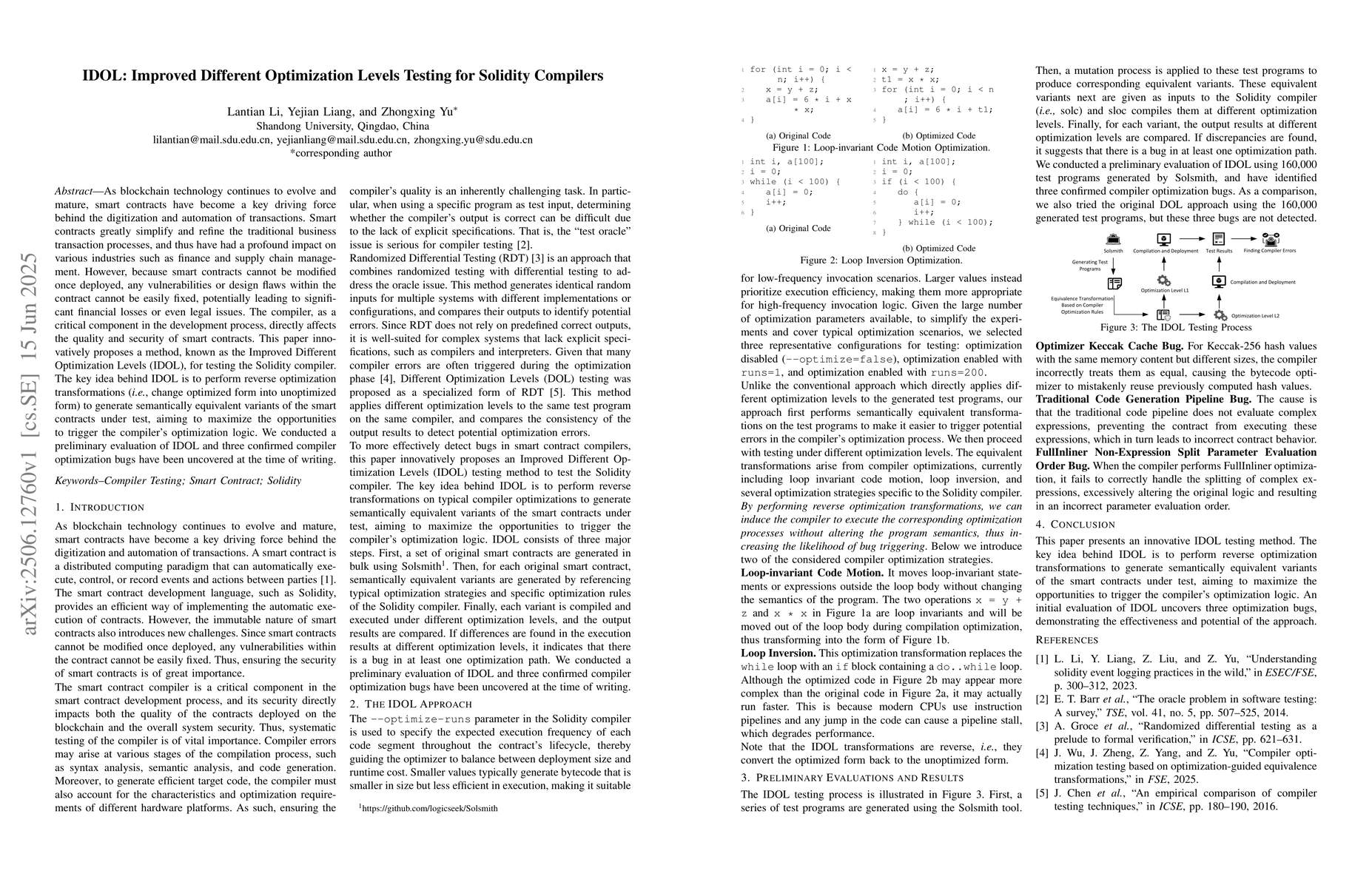 As blockchain technology continues to evolve and mature, smart contracts have become a key driving force behind the digitization and automation of transactions. Smart contracts greatly simplify and refine the traditional business transaction processes, and thus have had a profound impact on various industries such as finance and supply chain management. However, because smart contracts cannot be modified once deployed, any vulnerabilities or design flaws within the contract cannot be easily fixed, potentially leading to significant financial losses or even legal issues. The compiler, as a critical component in the development process, directly affects the quality and security of smart contracts. This paper innovatively proposes a method, known as the Improved Different Optimization Levels (IDOL), for testing the Solidity compiler. The key idea behind IDOL is to perform reverse optimization transformations (i.e., change optimized form into unoptimized form) to generate semantically equivalent variants of the smart contracts under test, aiming to maximize the opportunities to trigger the optimization logic of compilers. We conducted a preliminary evaluation of IDOL and three confirmed compiler optimization bugs have been uncovered at the time of writing.