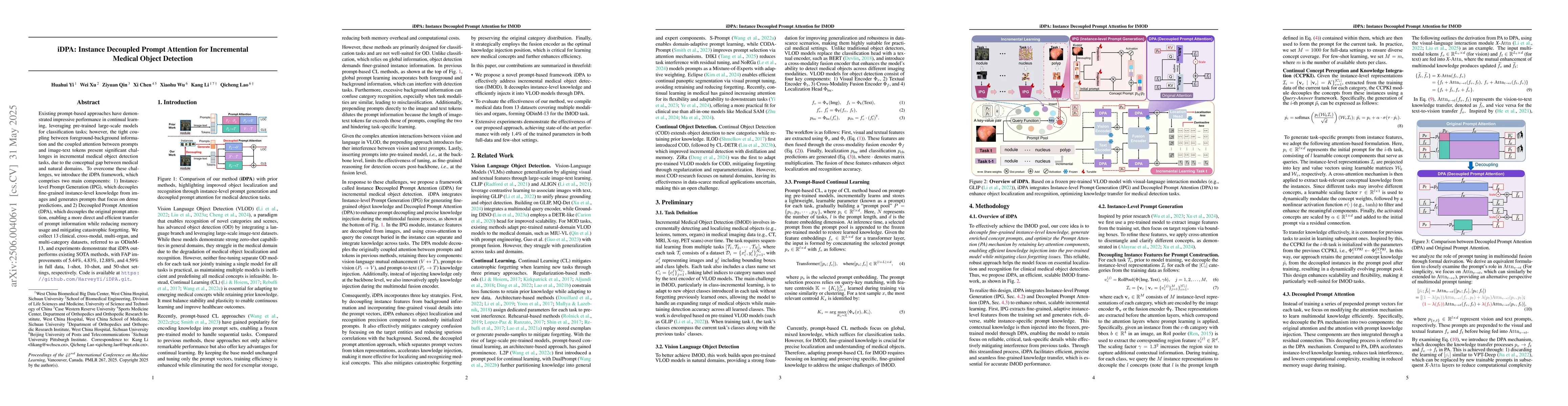 The paper introduces iDPA, a method for incremental medical object detection that decouples instance-level knowledge from images and employs decoupled prompt attention for efficient transfer of prompt information, reducing memory usage and mitigating catastrophic forgetting.