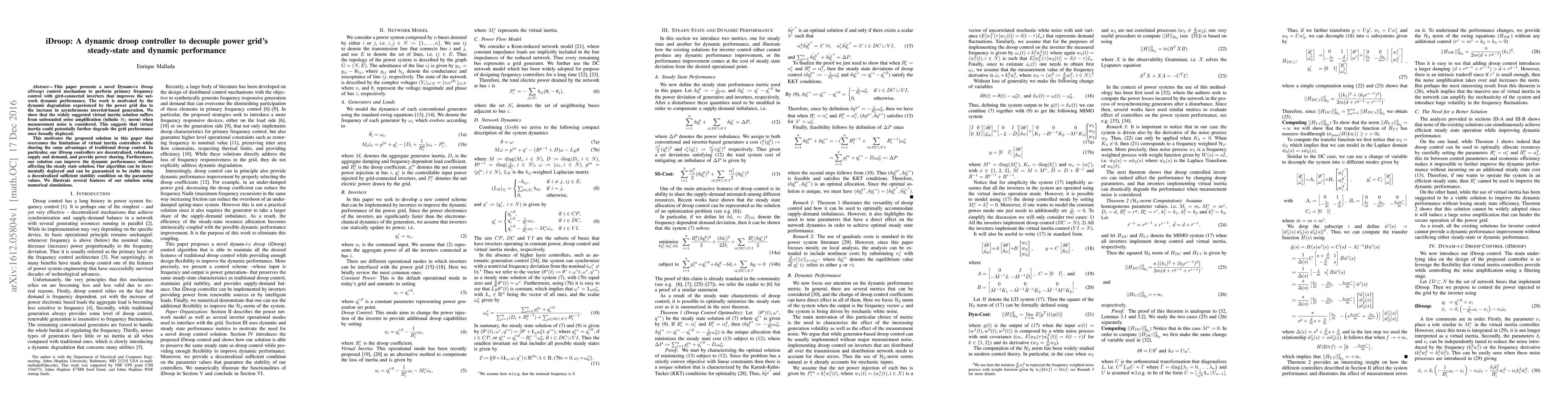 The paper introduces iDroop, a dynamic droop control mechanism to enhance primary frequency control in grid-connected inverters, addressing the dynamic performance degradation due to increased asynchronous inverter-based generation. Unlike virtual inertia, iDroop avoids unbounded noise amplification and maintains stability, while providing decentralized power sharing and improved dynamic performance without affecting steady-state performance.