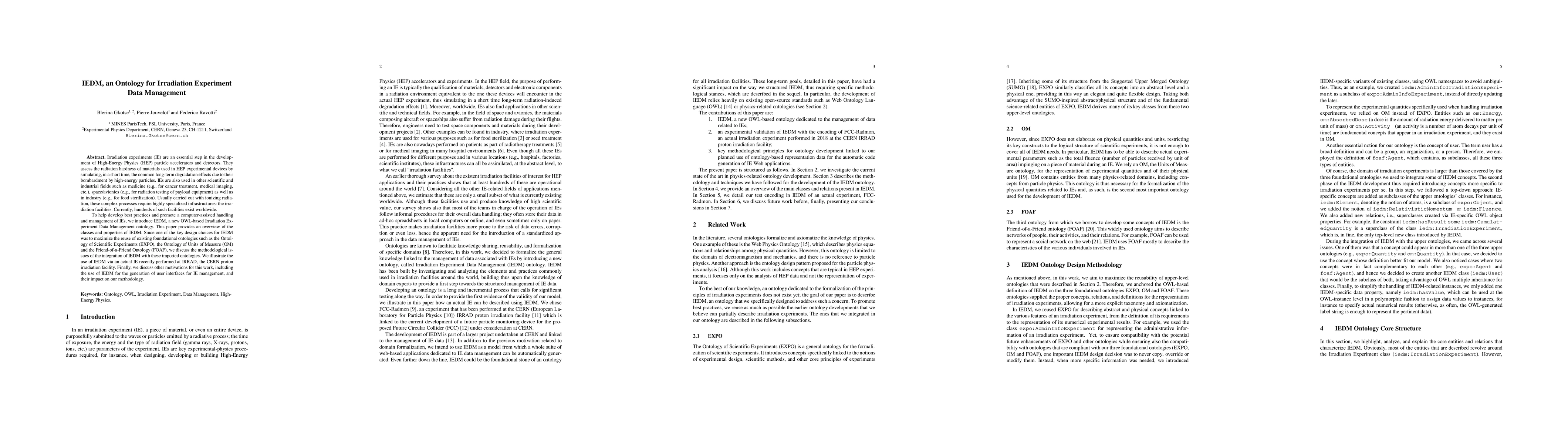 IEDM presents a comprehensive, domain-specific ontology for irradiation experiment data management, integrating and extending existing foundational ontologies.