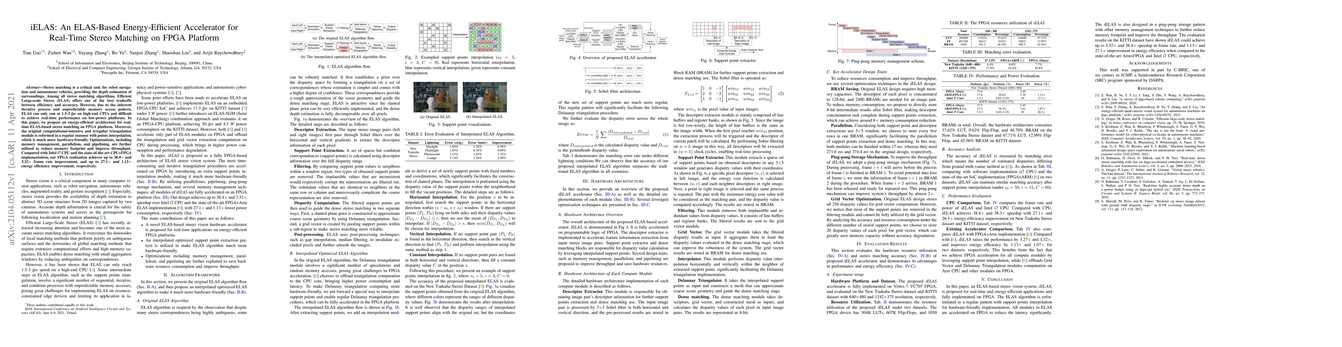 This paper proposes an energy-efficient FPGA-based accelerator for real-time ELAS-based stereo matching, achieving significant improvements in both frame rate and energy efficiency compared to CPU implementations. The architecture optimizes the triangulation module and employs memory management, parallelism, and pipelining for enhanced performance.