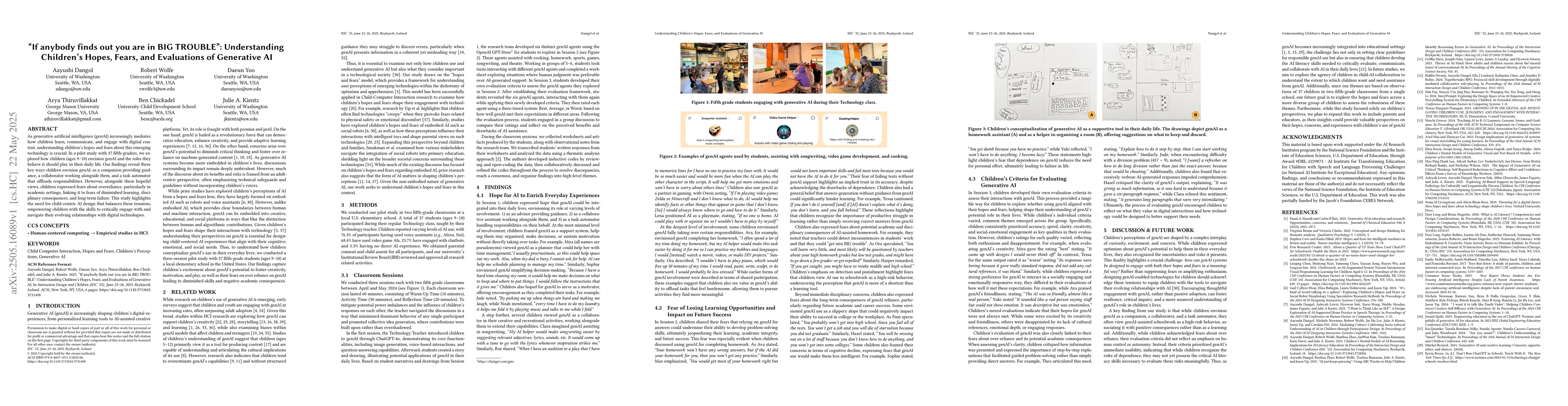 A pilot study was conducted with 37 fifth-graders (ages 9-10) to explore their envisioned roles of generative AI in their daily lives.